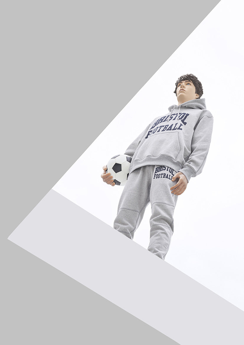 As a nod to classic campus style, our Fall '21 collaboration with Hirofumi Kiyonaga's fictional football club features a set of training apparel built with signature heavyweight fleece and midweight jersey fabrics, accented by bold logo graphics and co-branded detailing.