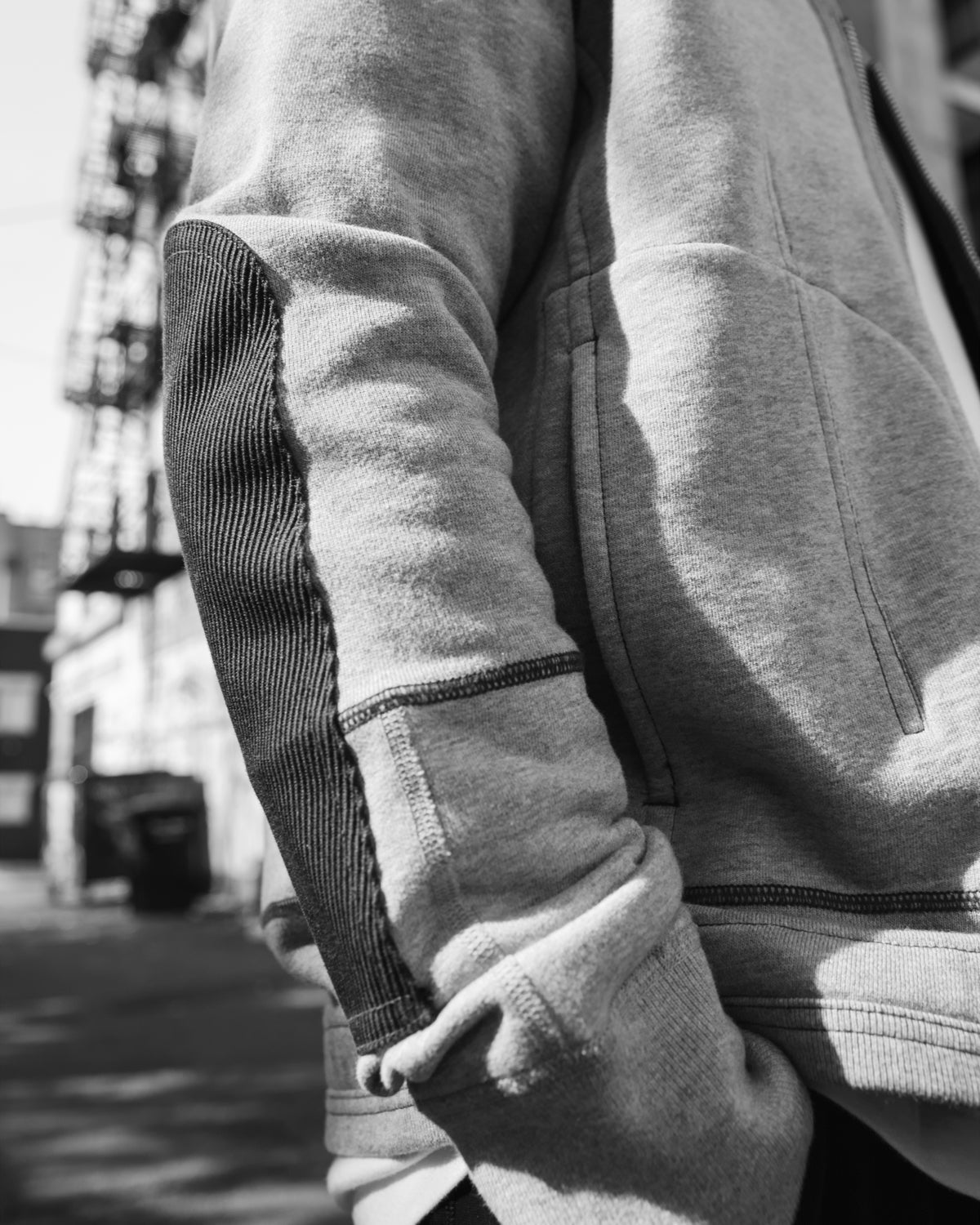This season, Watanabe deconstructs two of our Midweight Terry staples to reproduce an intricately tailored zip cardigan and hybrid sweatpant trouser. The exclusive capsule once again highlights Junya Watanabe's remixed approach to utilitarian style and the complex simplicity that has become his design signature since he first joined Comme des Garçons in the late 80s.