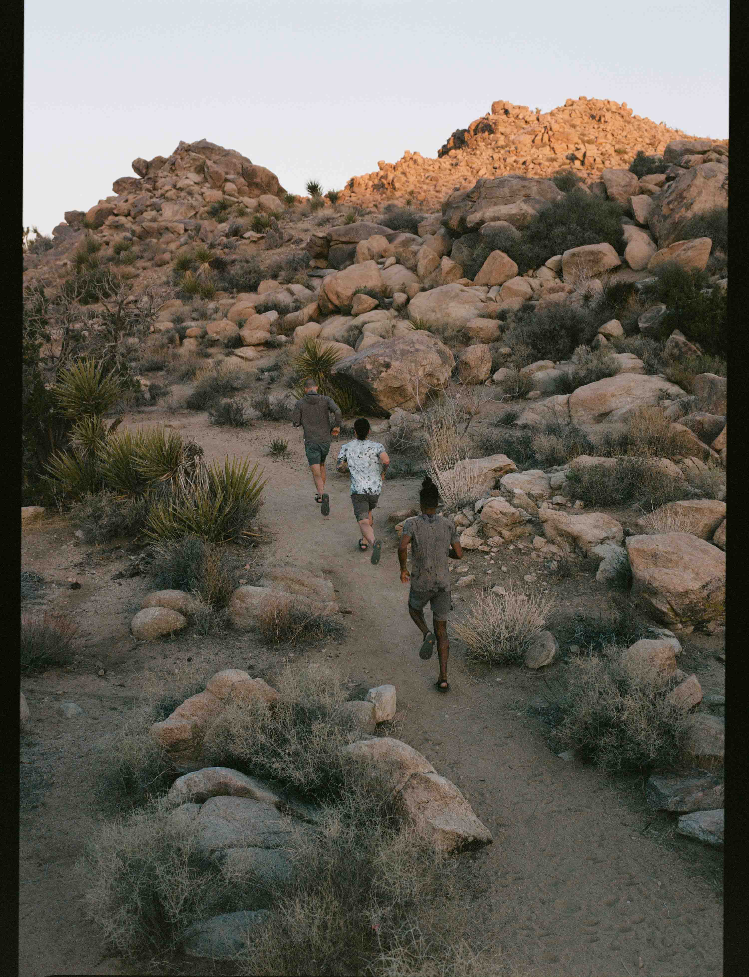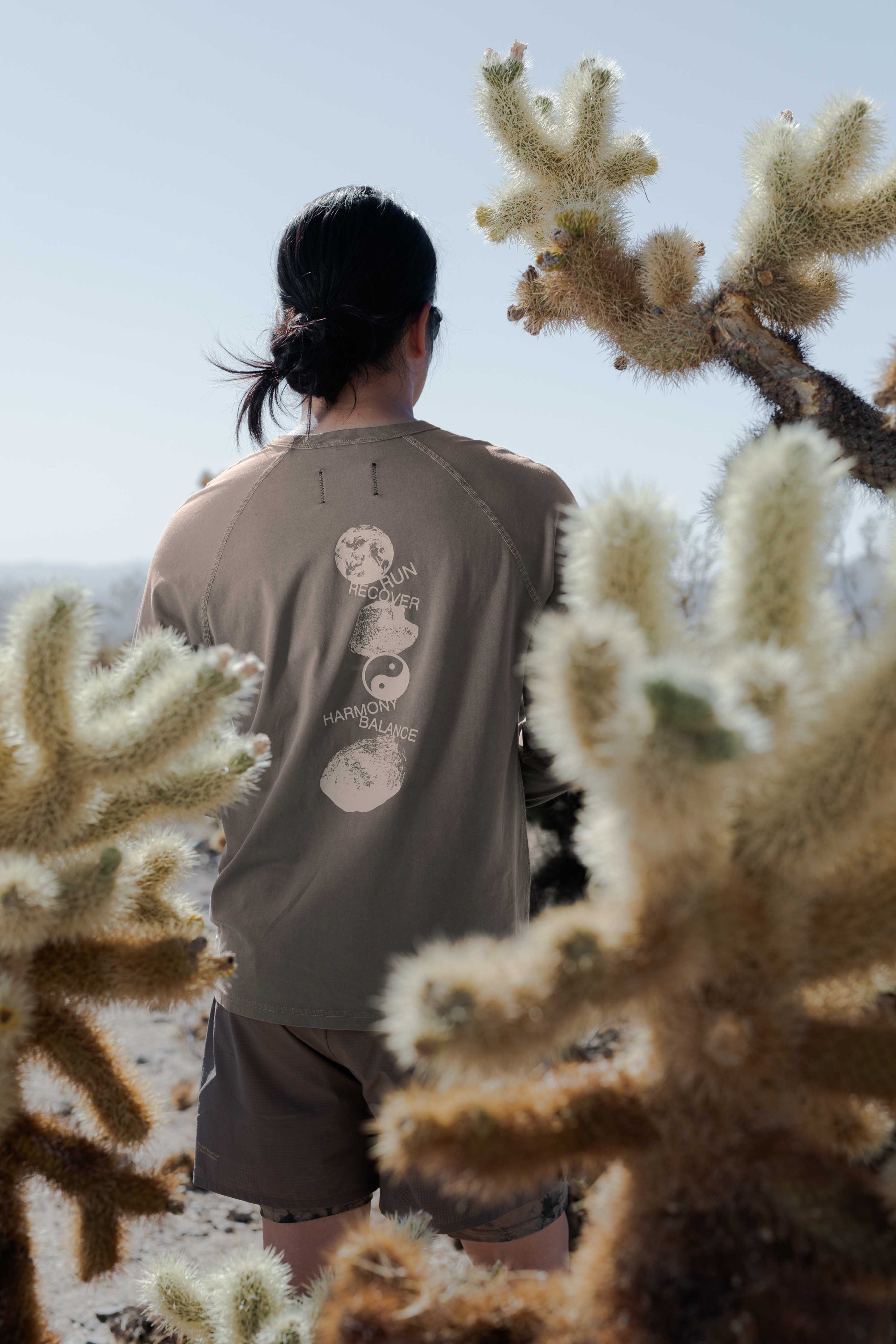 Shot on location at Joshua Tree National Park, the campaign film follows Willms and fellow runners, Knox Robinson and Duy Nguyen, through an ecosystem of rocky terrain, cacti-lined trails and stark desert landscape, a fitting backdrop that is reflected in the collection's tonal palette of natural pigments, earth tones, and tie dyes.