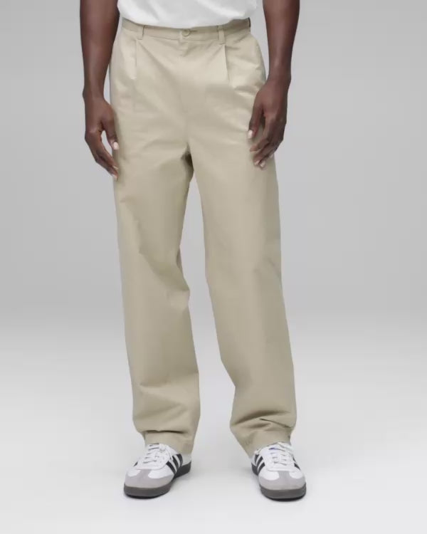 A generous fit through the hips and thigh with a dropped rise for ease of movement, and a wide straight leg for a roomy, fluid drape.
