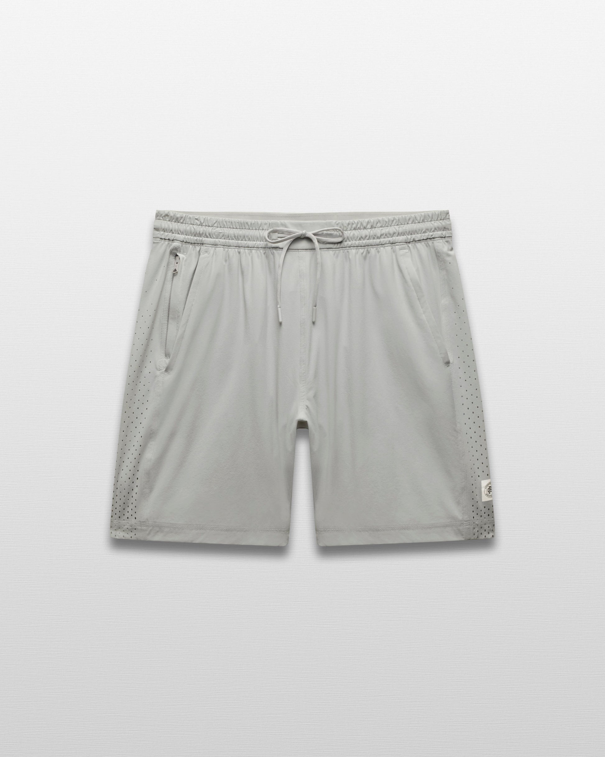 Our all-purpose active short made from lightweight stretch nylon, with moisture wicking ability and resistance to pilling and abrasion. Featuring a full-cut standard fit and 7" inseam length. Designed with laser-cut mesh side panels, soft mesh waistband, slash pockets, and a sweat-resistant zip pocket for your phone or small essentials.