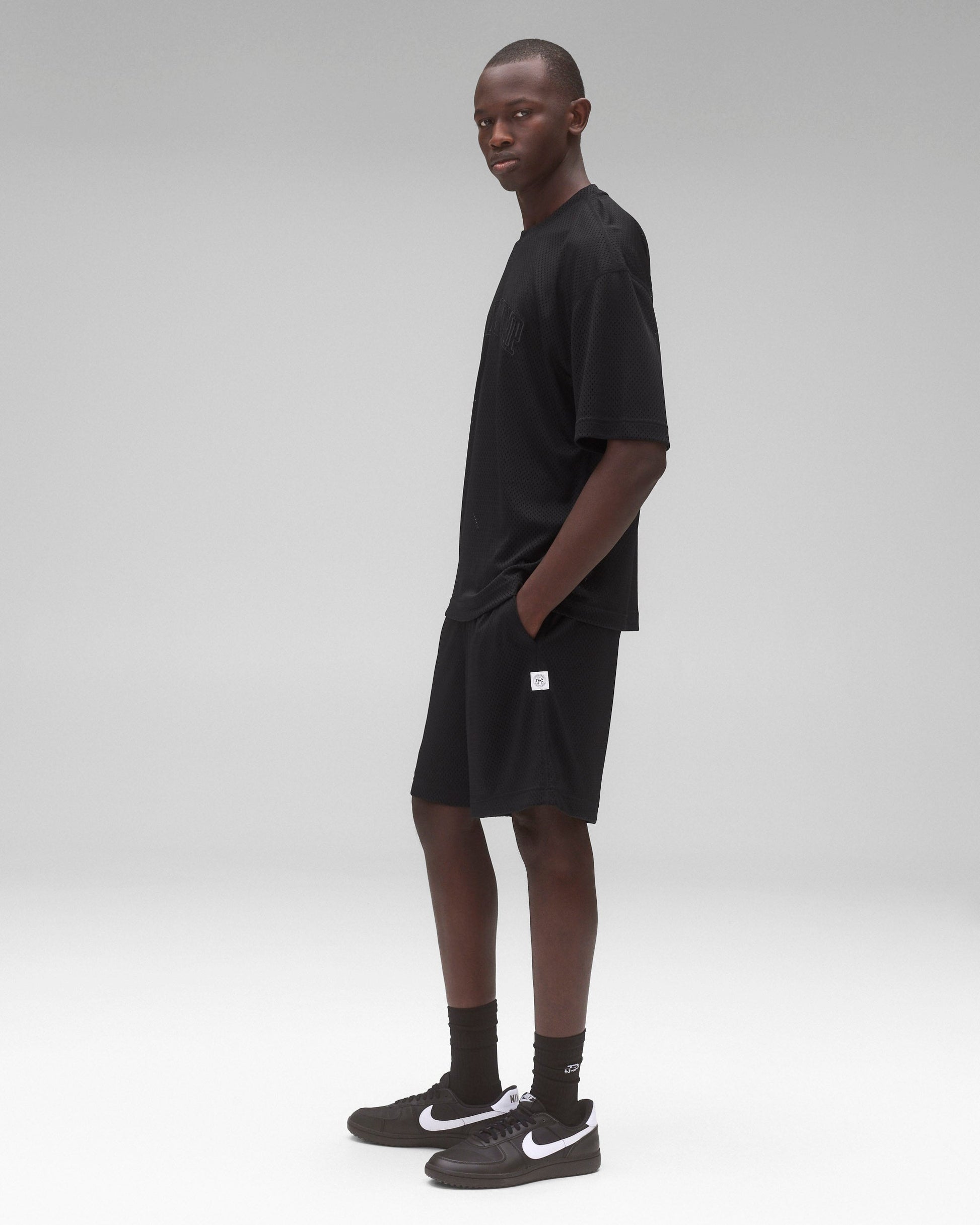This relaxed graphic tee is crafted from breathable athletic mesh, featuring our classic collegiate logo across the chest. Designed with a voluminous fit through the body, and drop shoulder construction. Details include a self-fabric collar and cuffs, set-in sleeves, and signature flatlock construction.