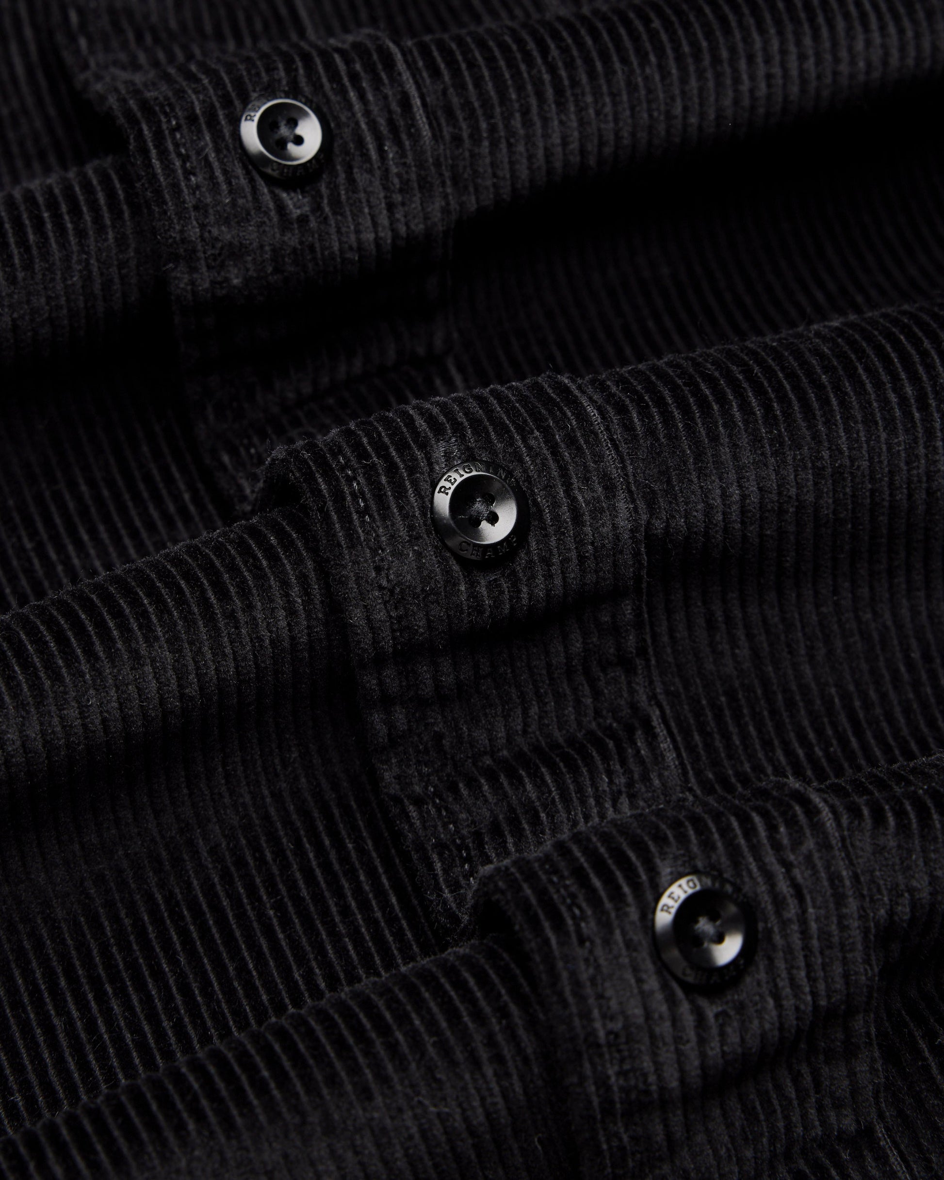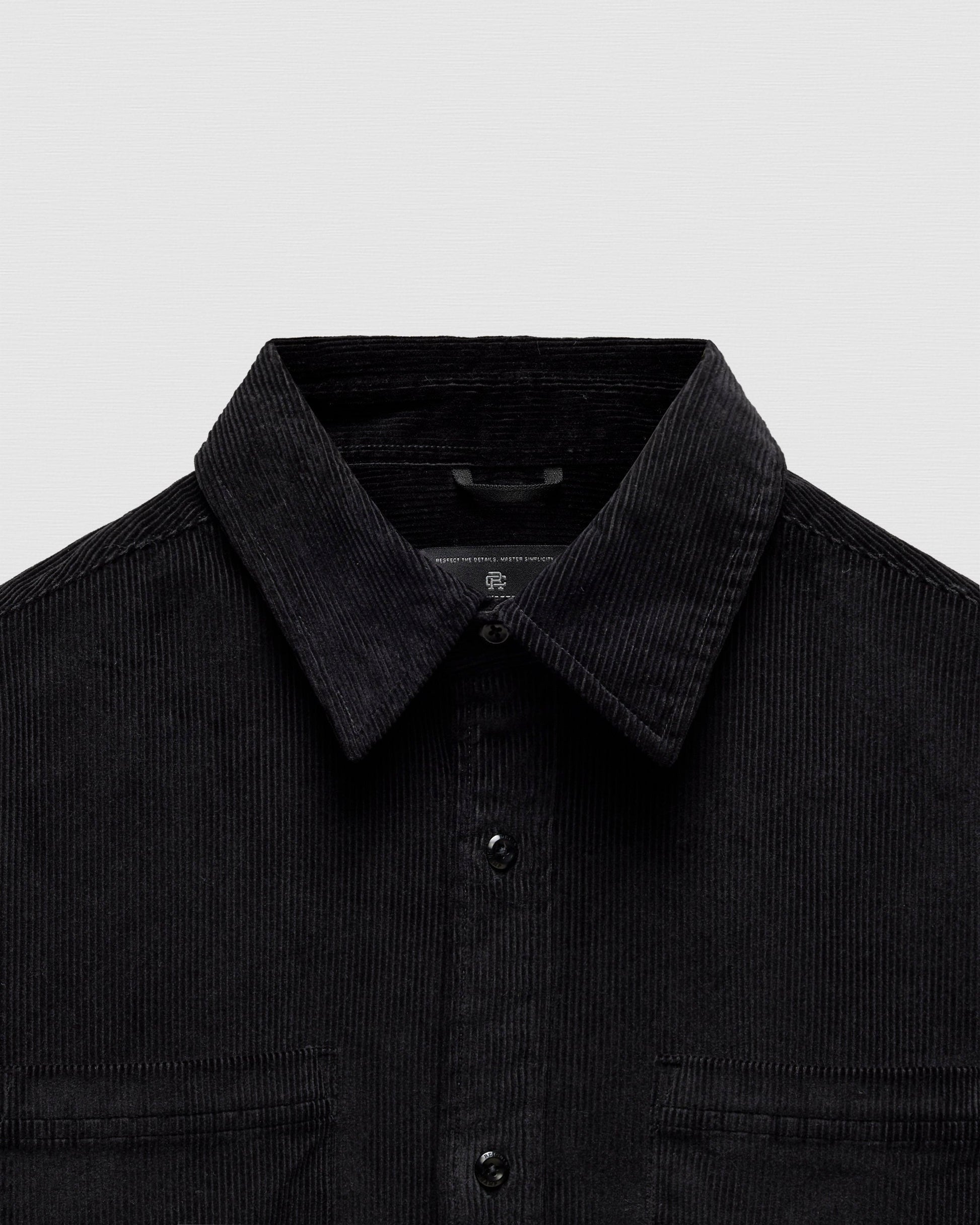 This cotton corduroy overshirt features classic 10-wale construction, garment-washed for a softer, lived-in feel. Cut in a boxy standard fit for easy layering. Designed with a pointed collar, dual chest pockets, corozo buttons, adjustable cuffs, and a flat hem.