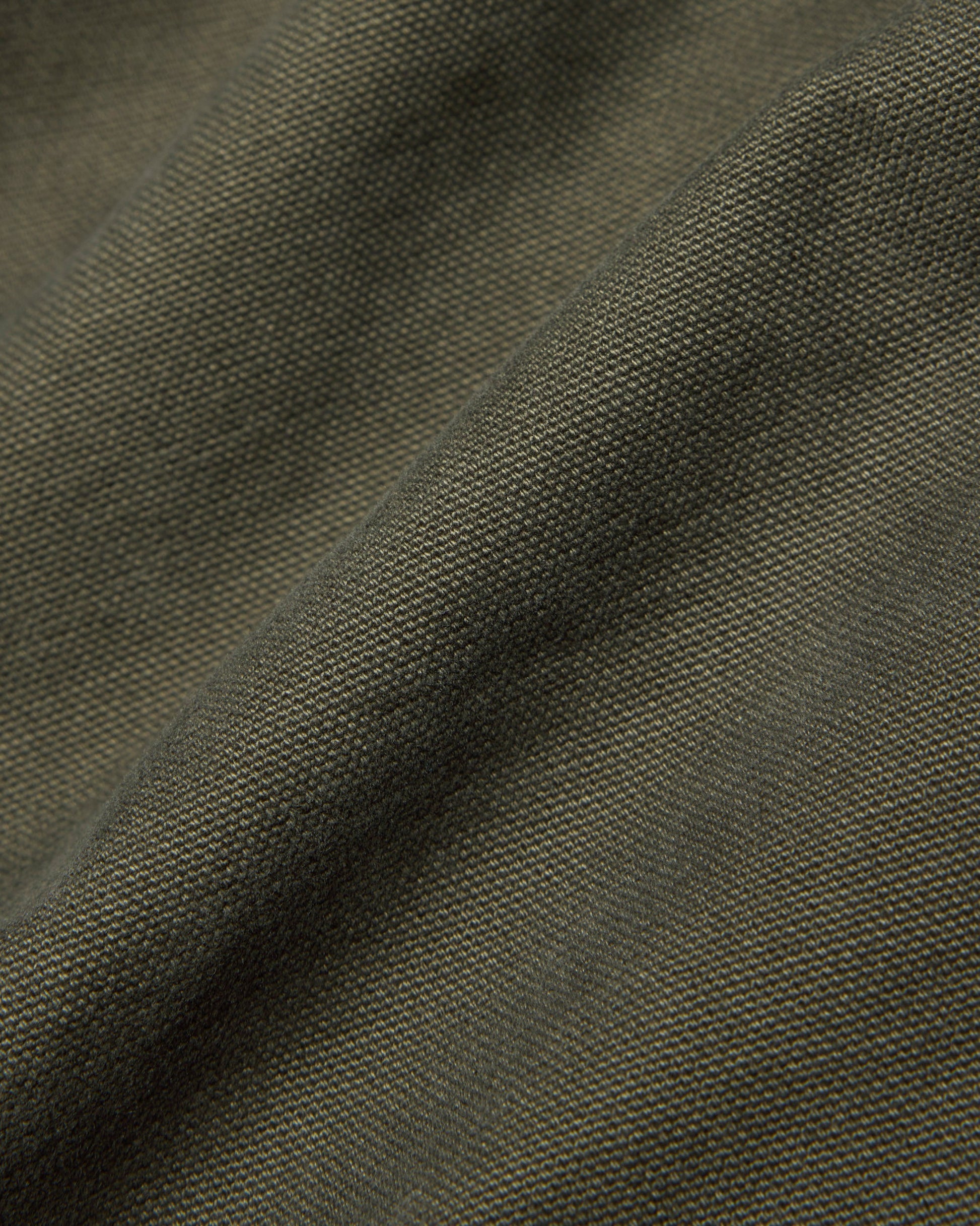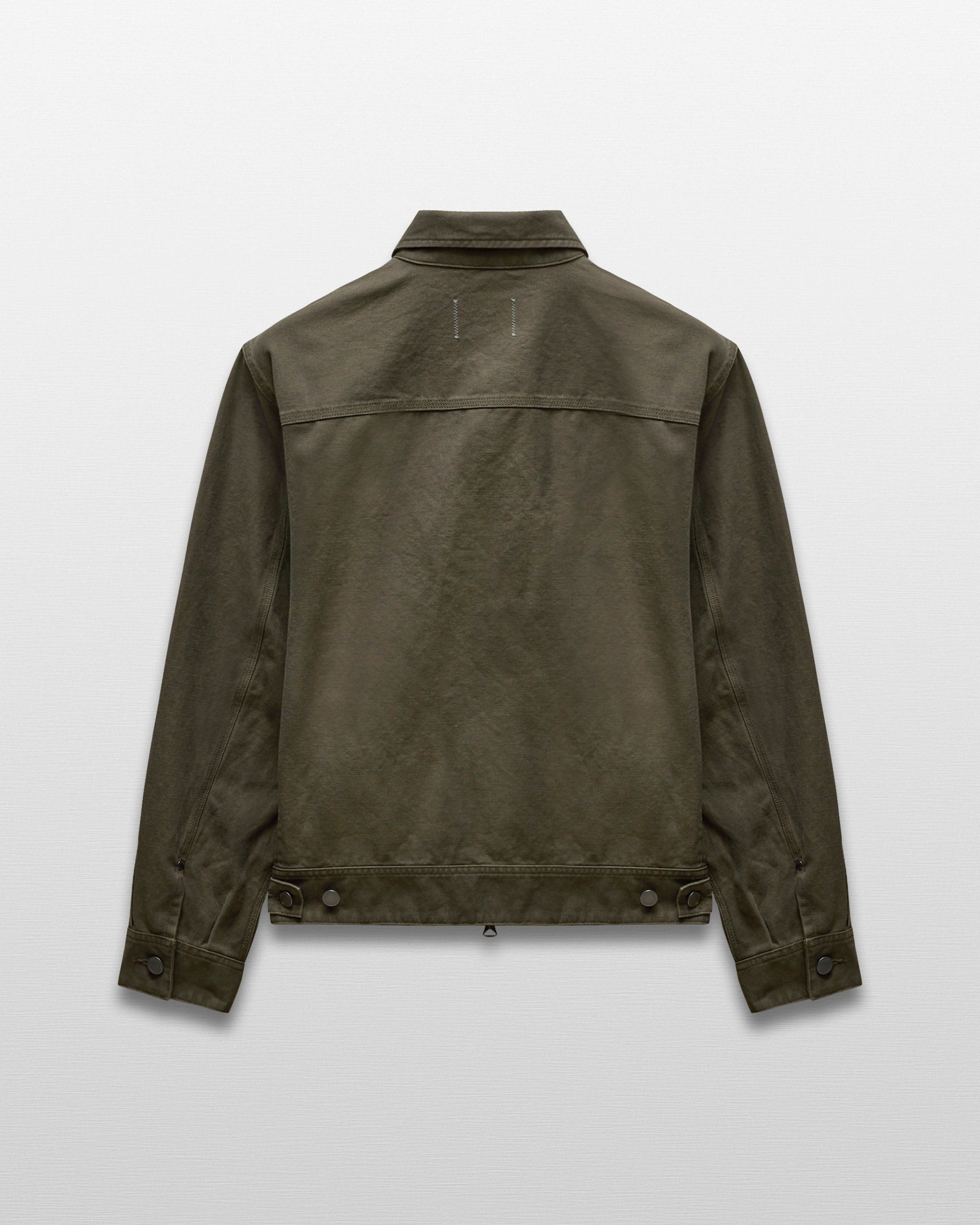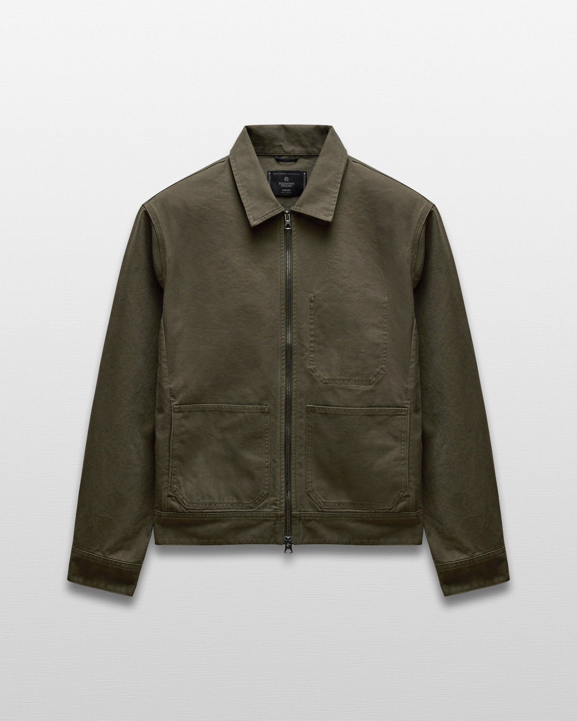 Crafted from midweight cotton canvas, this work jacket is densely woven and micro-sanded for a soft, lived-in feel. Featuring a standard straight cut with a banded hem that falls at the waist. Designed with a heavy gauge YKK two-way metal zipper, mitered patch pockets, tack buttons, and tab adjusters at the hem.