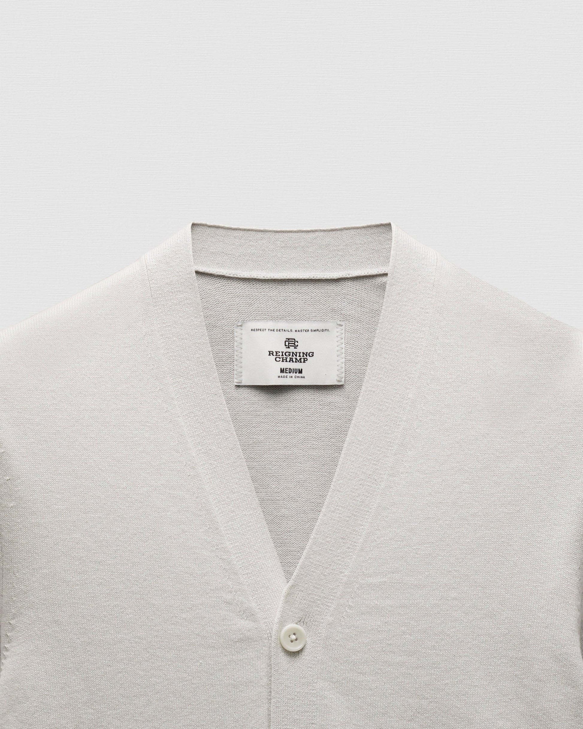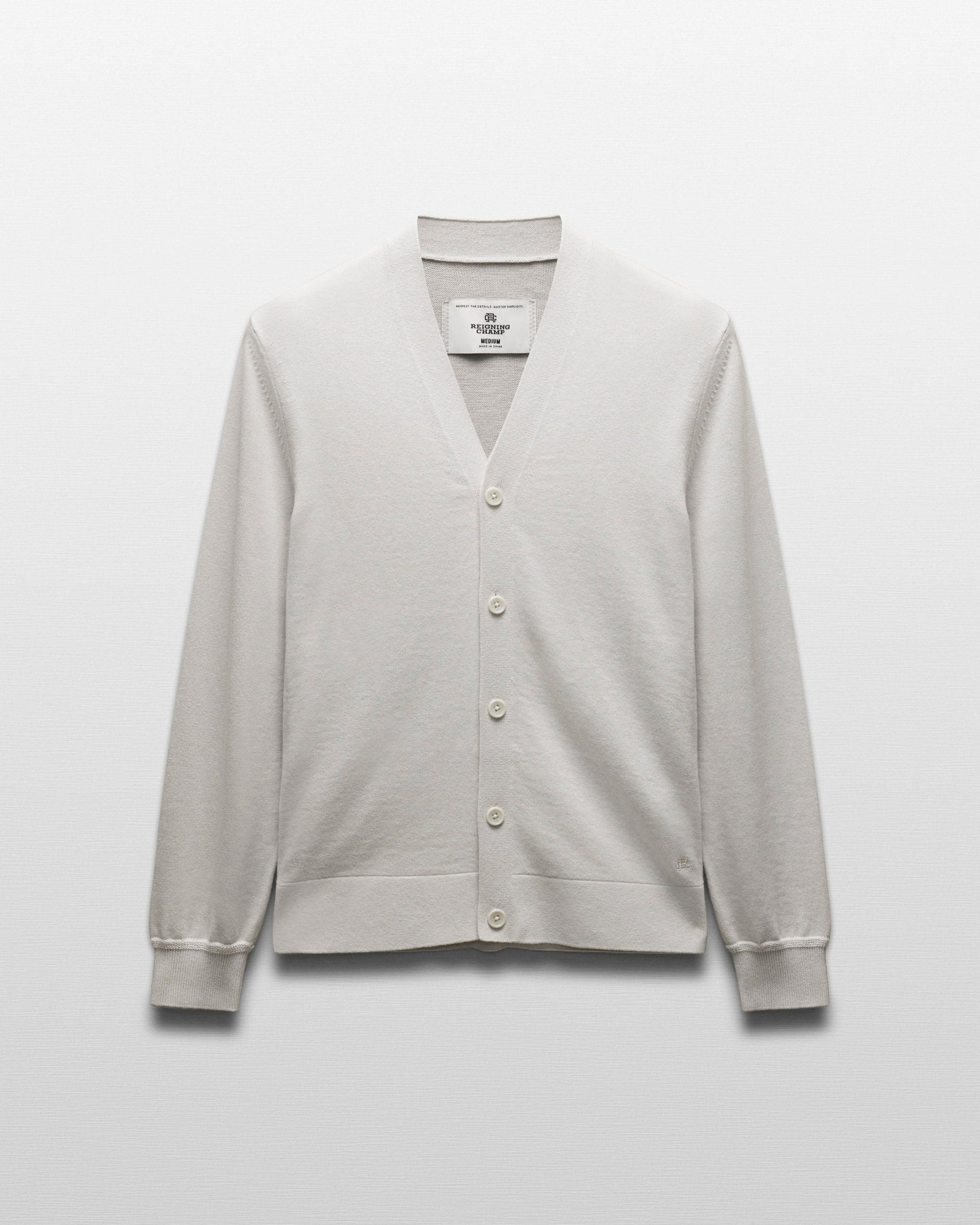 This compact knit cardigan is crafted from a midweight blend of cotton and cashmere. Featuring a standard fit, with fully fashioned seams. Designed with a full needle placket and side gussets, corozo buttons, and lycra-blended cuffs and waist hem for added durability.