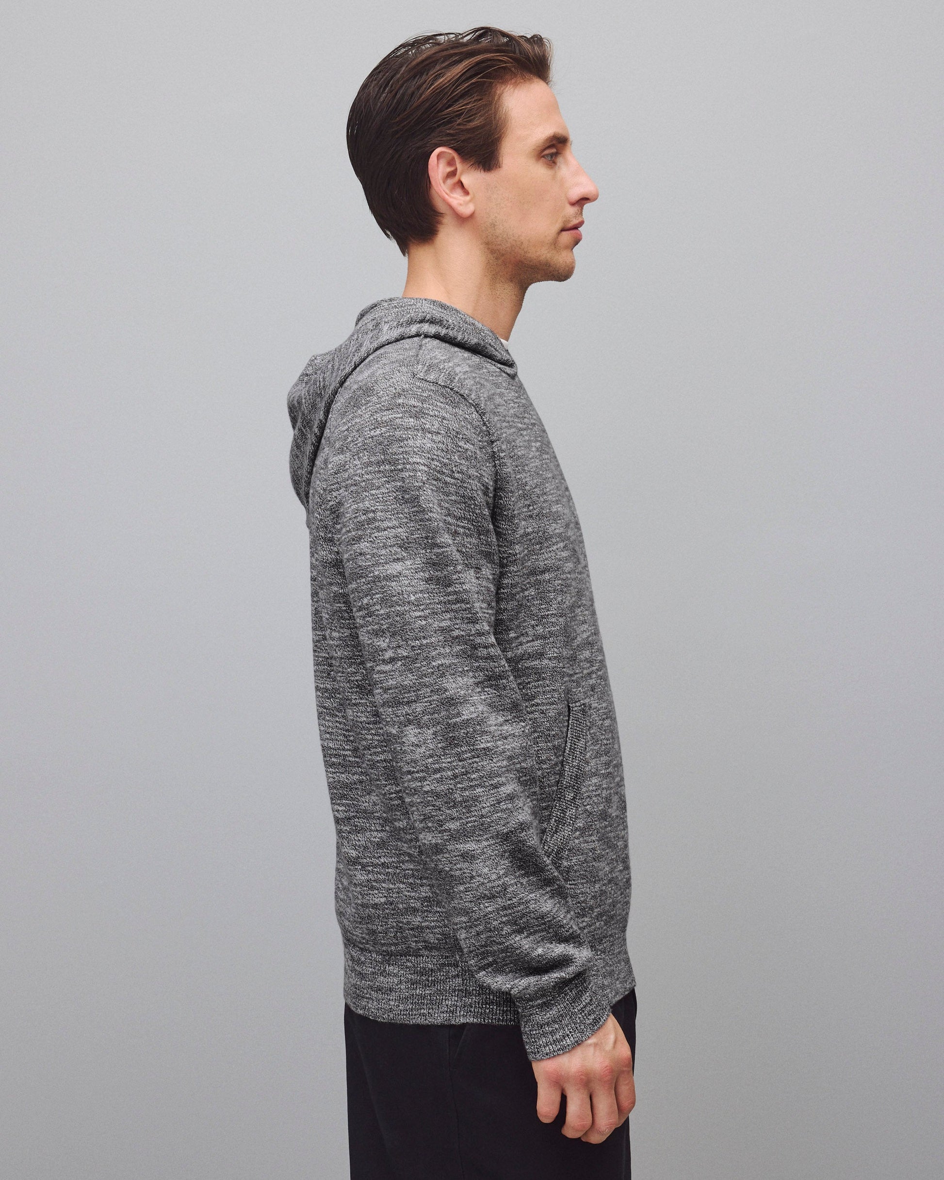 This seasonal hoodie is crafted from a midweight cotton slub that's breathable and combed for a soft feel. Featuring a standard fit, with fully fashioned seams. Designed with a darted hood, semi-raglan sleeves, front pocket, and lycra-blended cuffs and hem for added durability.