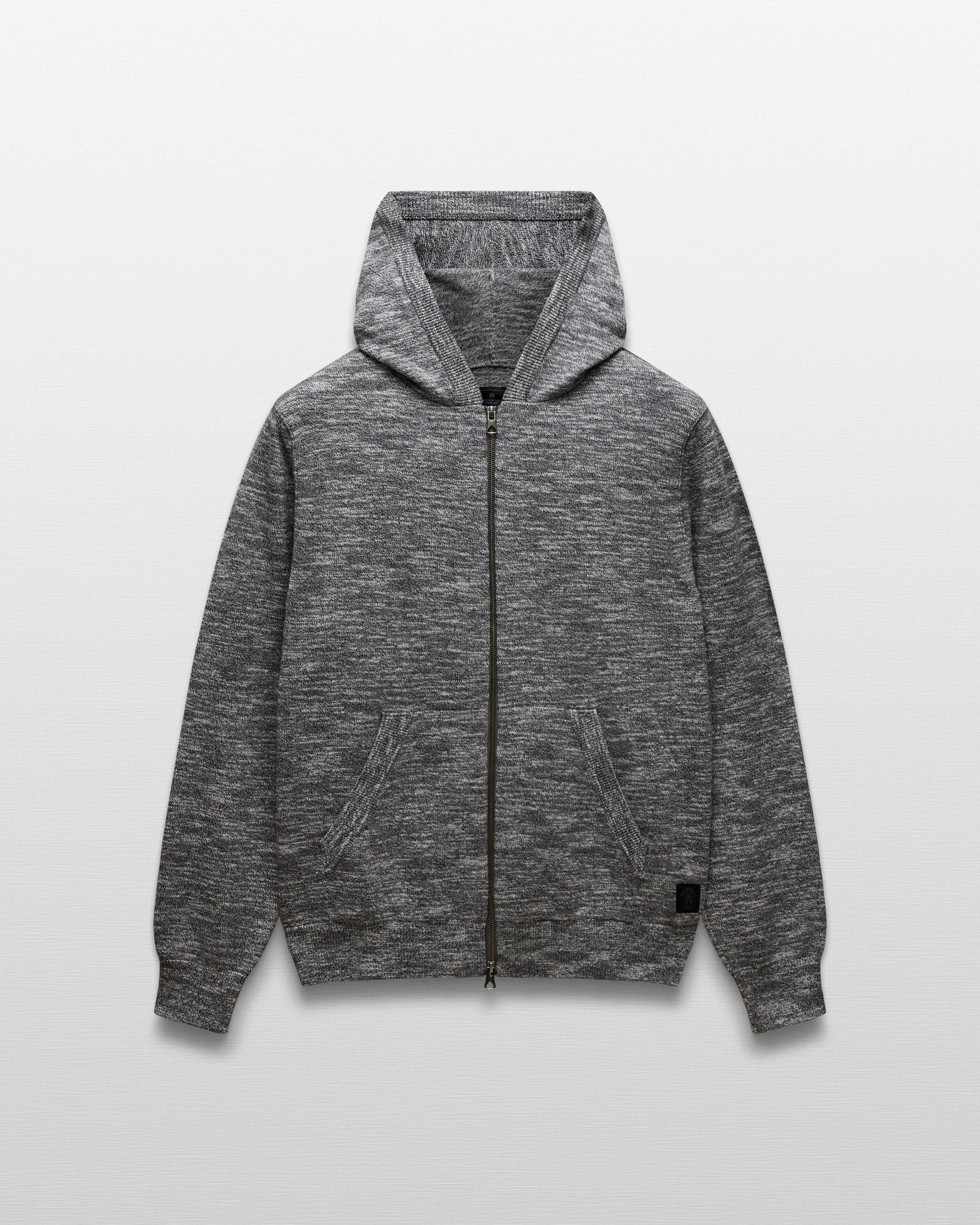 This seasonal zip hoodie is crafted from a midweight cotton slub that's breathable and combed for a soft feel. Featuring a standard fit, with fully fashioned seams. Designed with a darted hood, semi-raglan sleeves, a heavy gauge two-way YKK zipper, front pockets, and lycra-blended cuffs and hem for added durability.