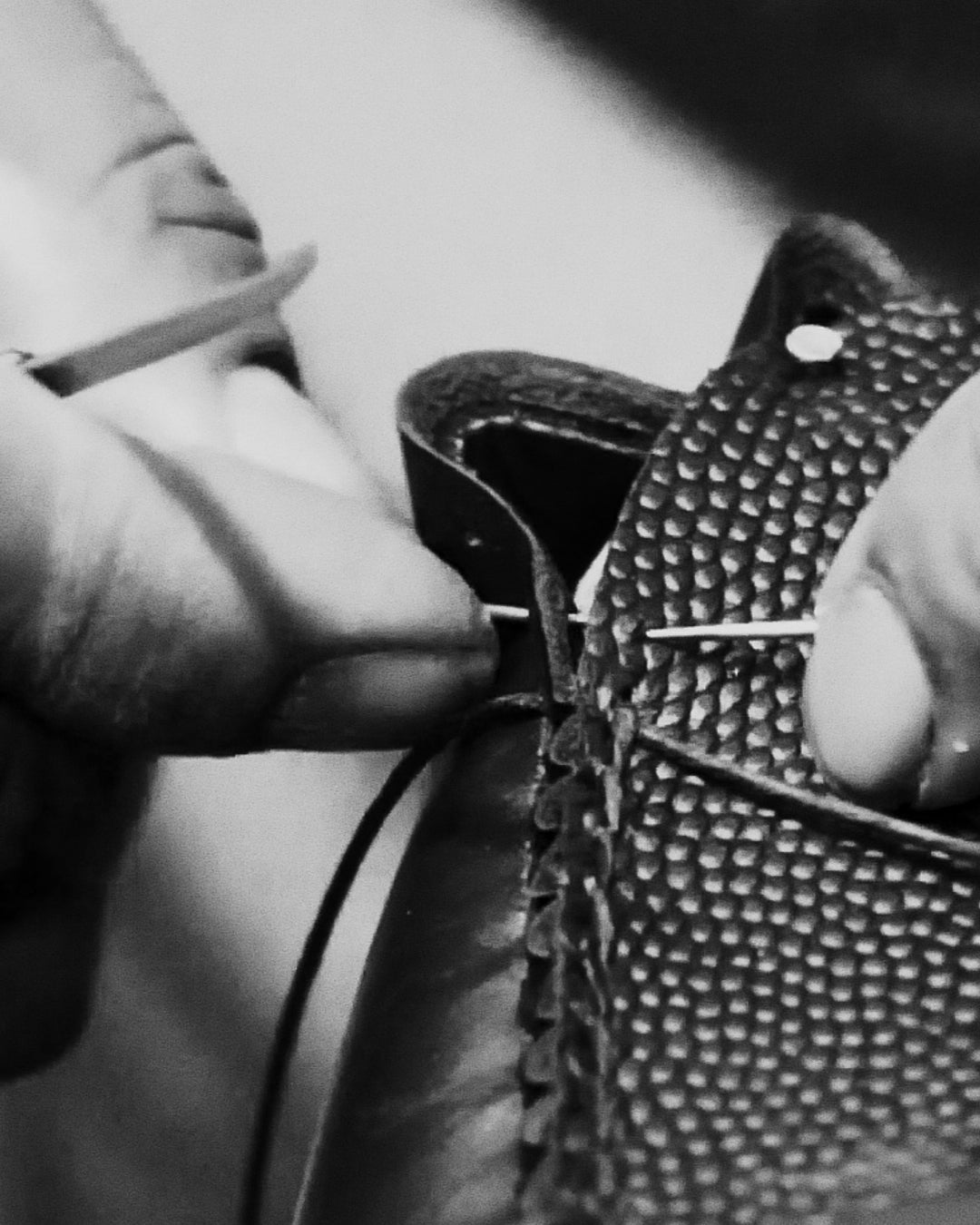 Each pair is hand-painted in white lacquer, built to break in like game leather.