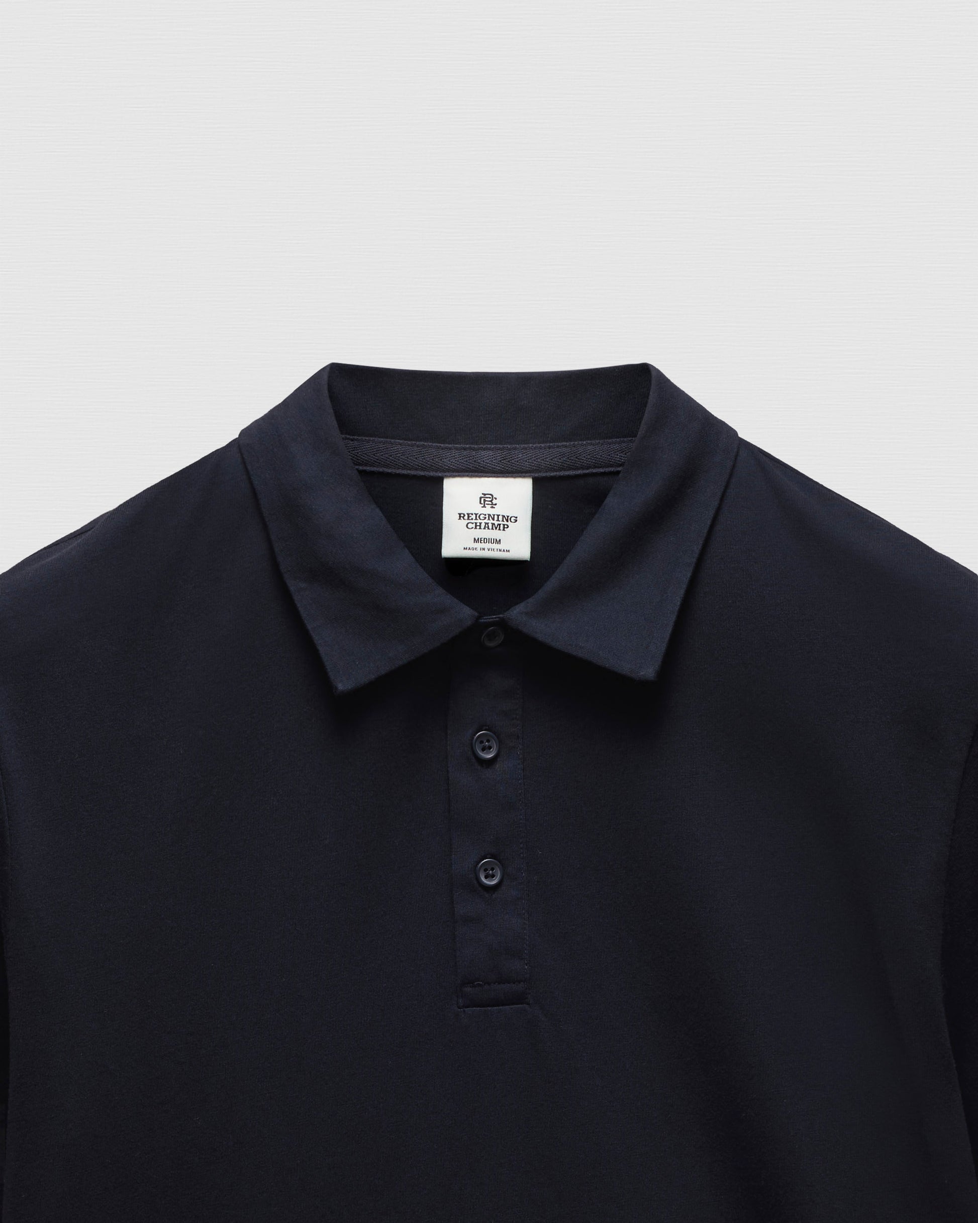 This short sleeve polo is crafted from premium cotton with a versatile year-round weight. Cut in a standard athletic fit with balanced proportions. Designed with a self-fabric collar, tonal logo buttons, set-in sleeves, side slit hem, and signature flatlock seams.