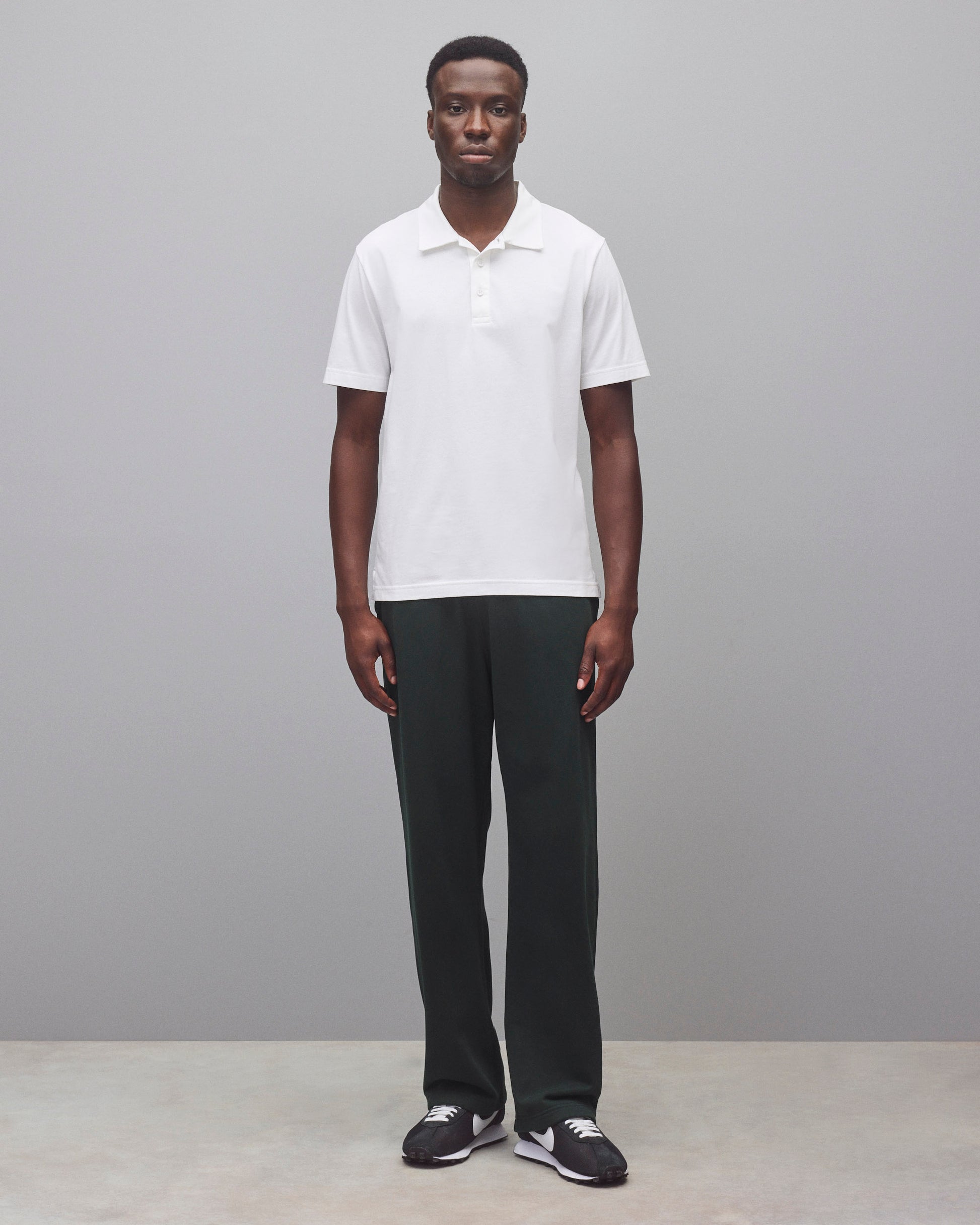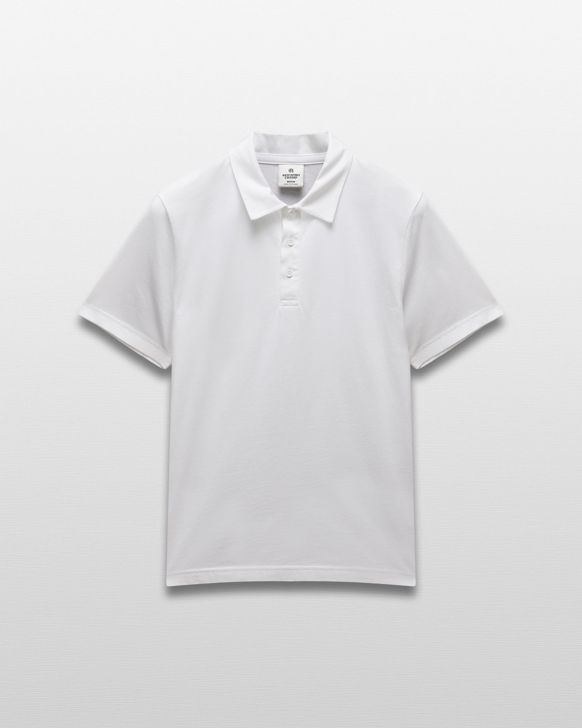 This short sleeve polo is crafted from premium cotton with a versatile year-round weight. Cut in a standard athletic fit with balanced proportions. Designed with a self-fabric collar, tonal logo buttons, set-in sleeves, side slit hem, and signature flatlock seams.