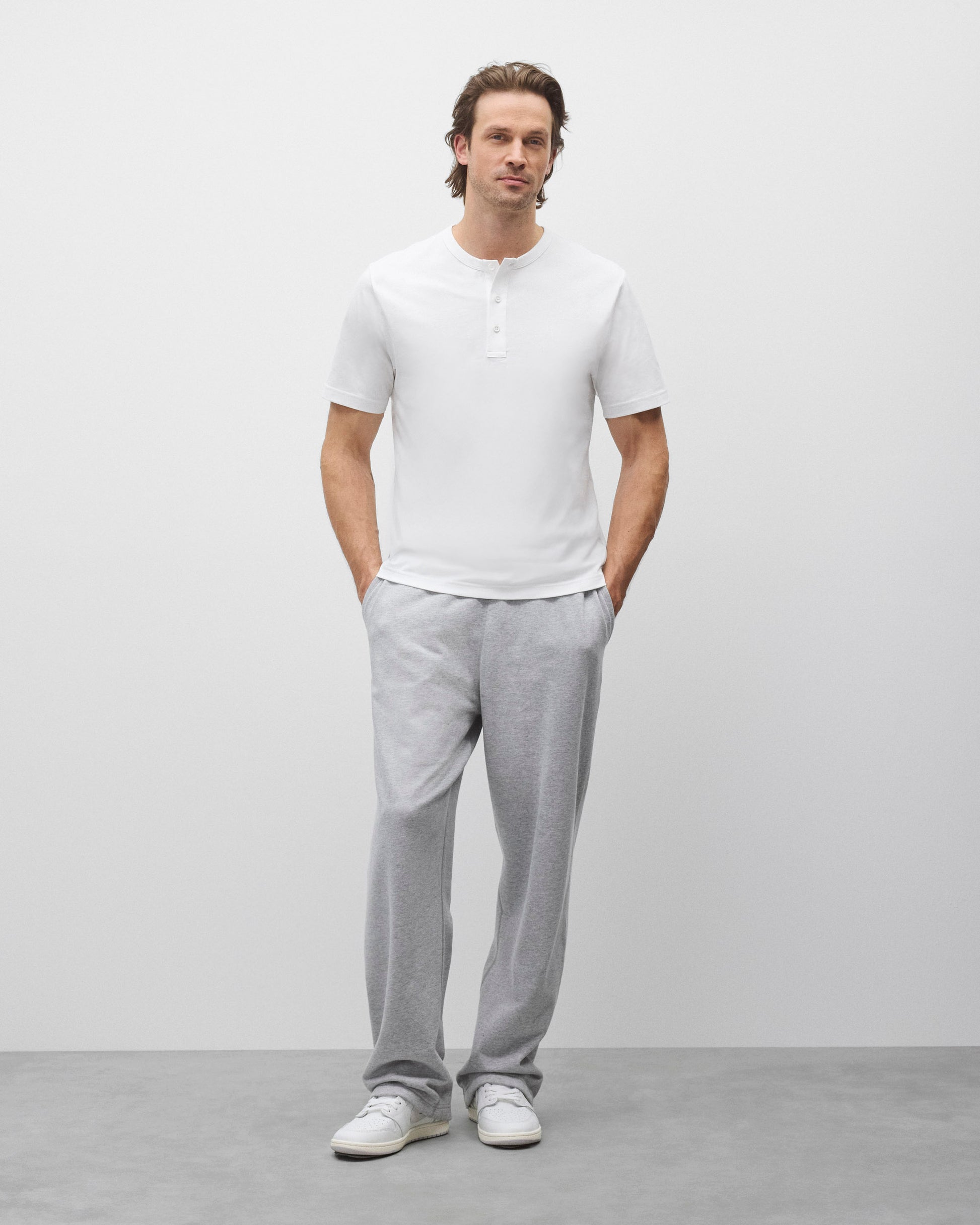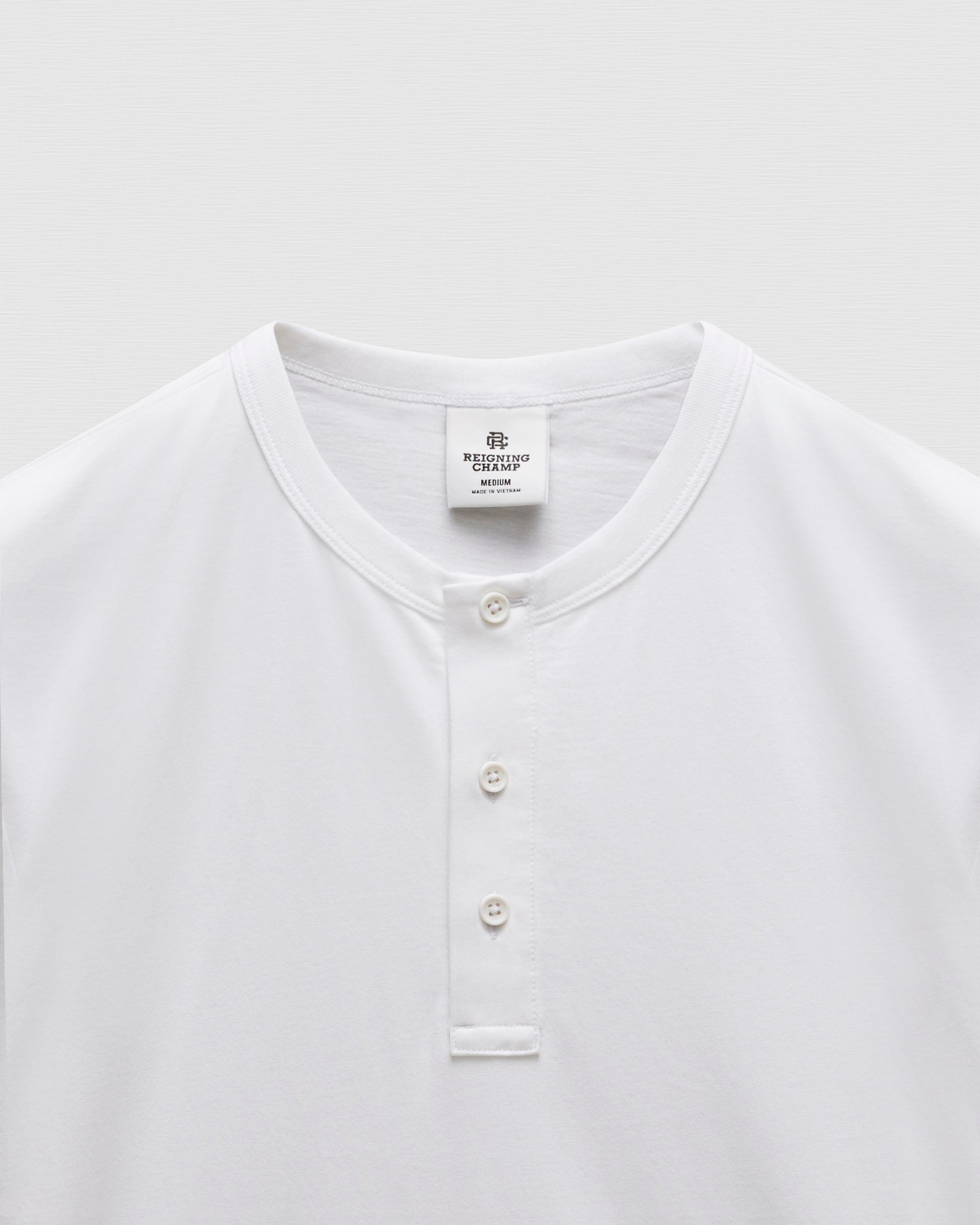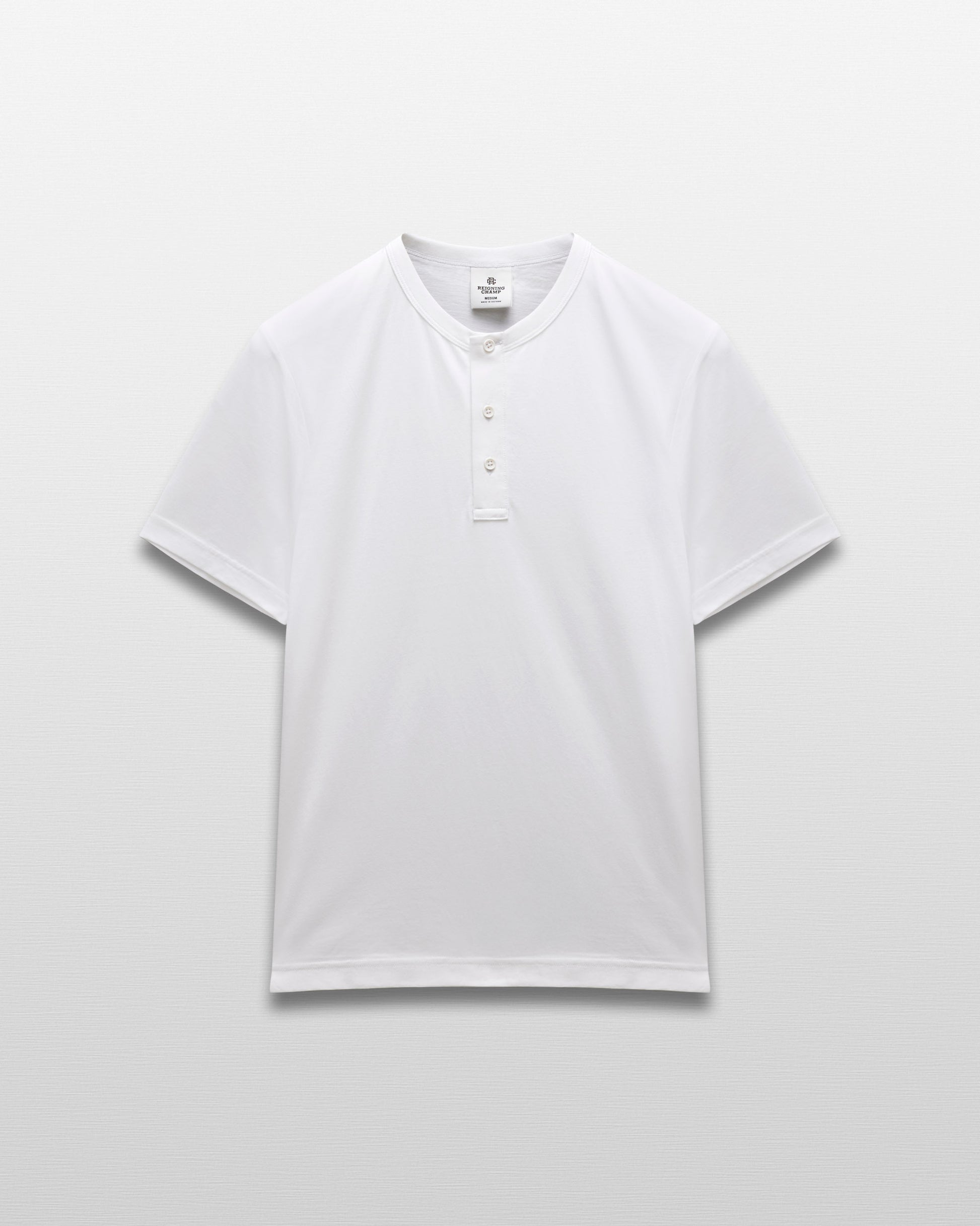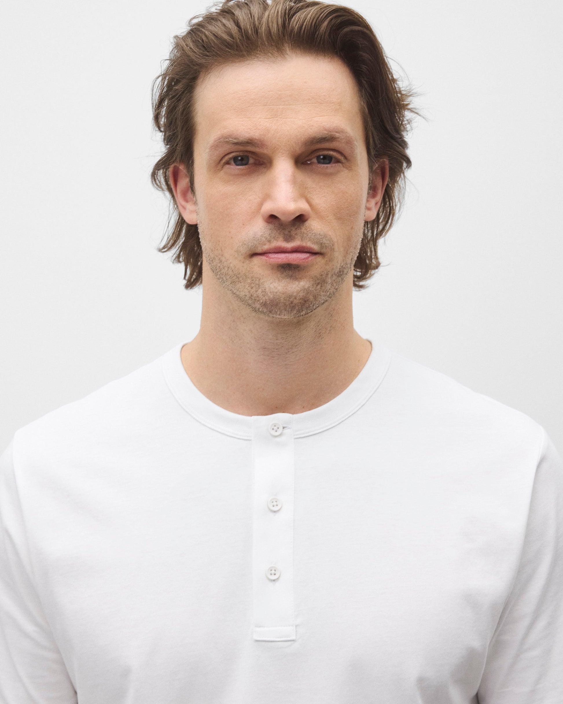 This short sleeve henley is crafted from premium lightweight cotton jersey with a fine handfeel and durable, lasting fit. Cut in a standard silhouette with balanced proportions. Designed with a three-button placket, set-in sleeves, and signature flatlock seams.