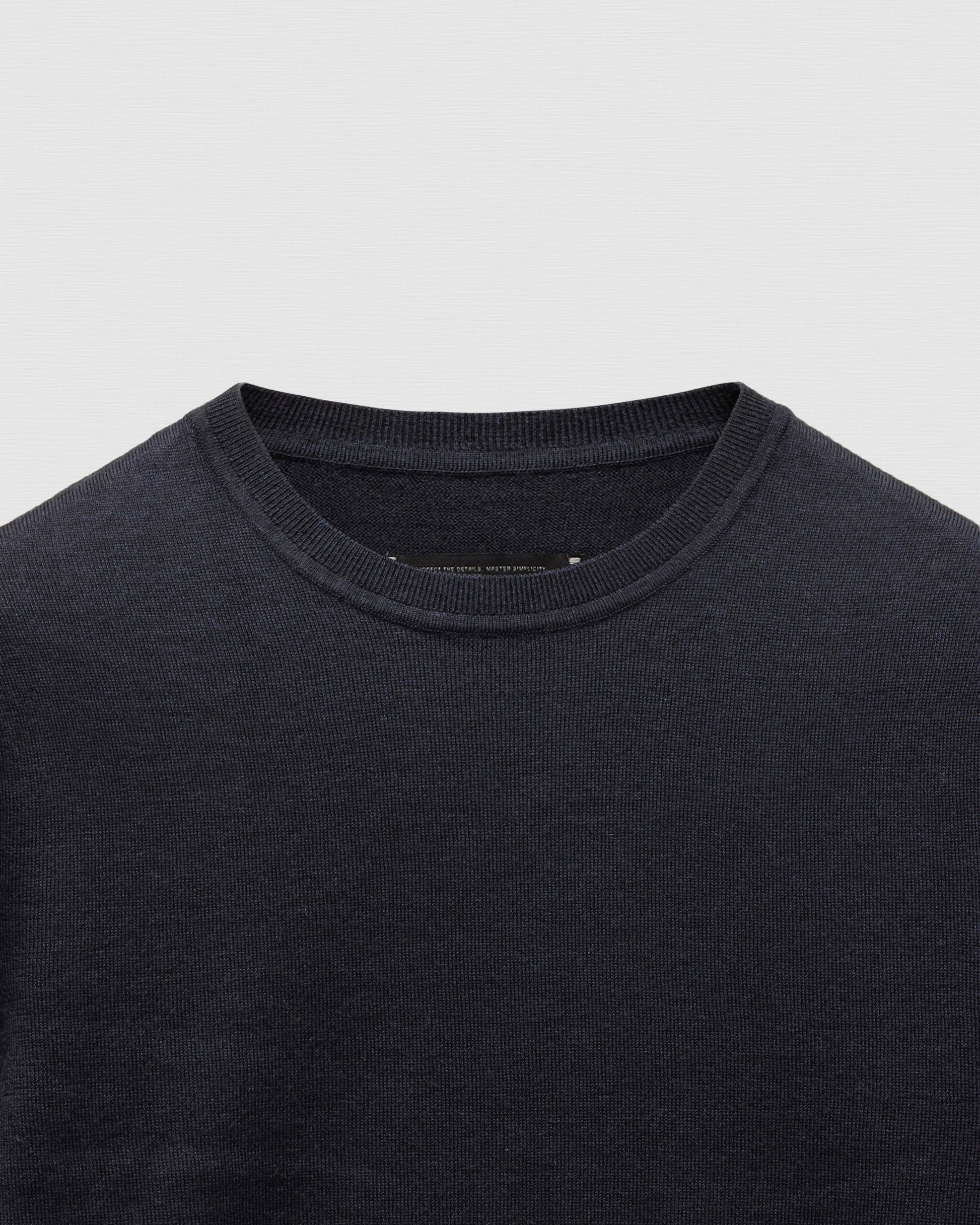 This lightweight knitted crewneck is crafted from extrafine merino wool milled in Italy. Featuring a trim fit, with fully fashioned seams. Designed with a rib knit collar, and rib cuffs and hem.