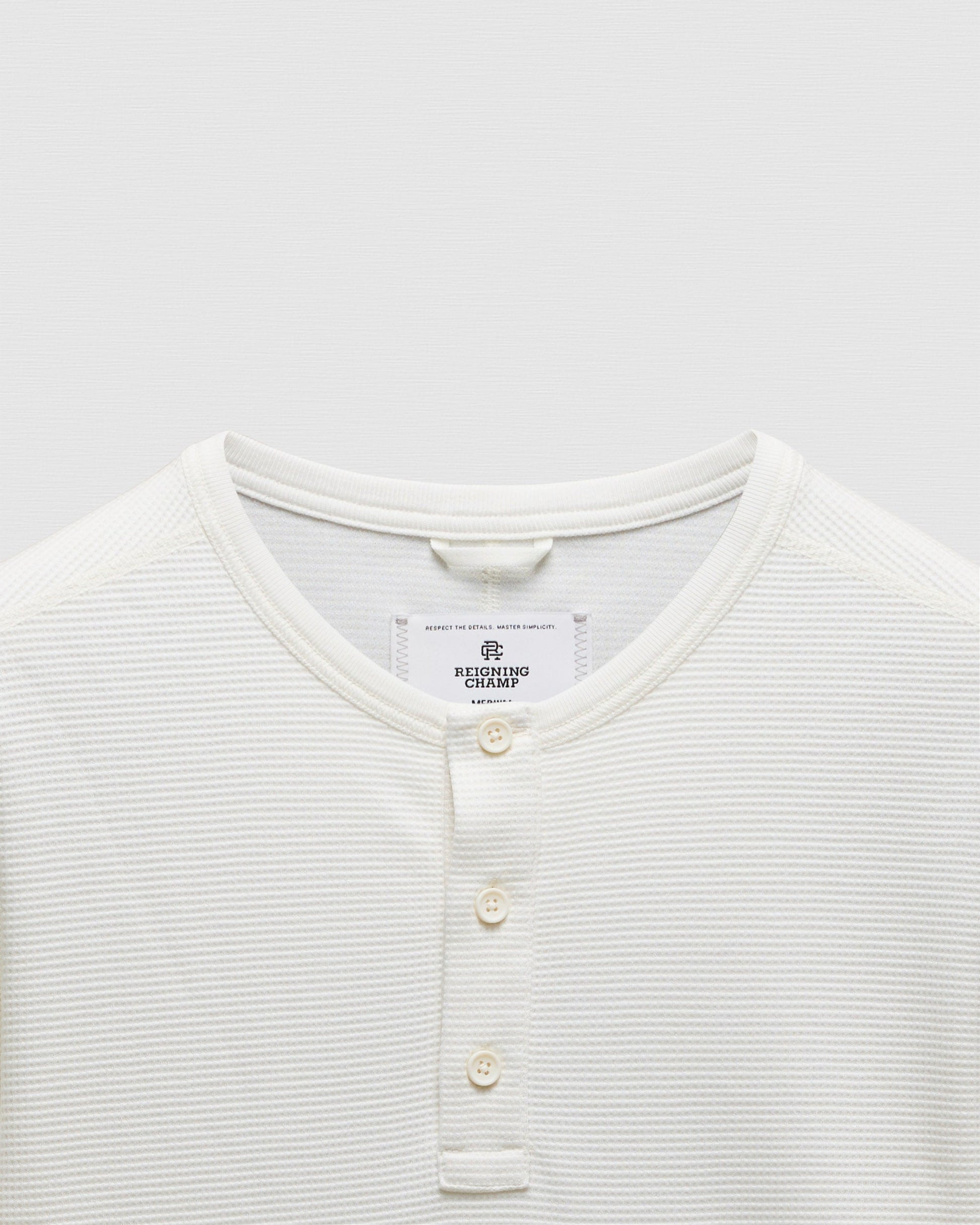 This long sleeve henley is crafted from waffle-knit fabric that's combed for comfort and made with TENCEL™ Modal. Featuring a standard fit to complement all body types. Designed with a tonal 3-button placket, set-in sleeves, durable rib cuffs, and a flat hem.