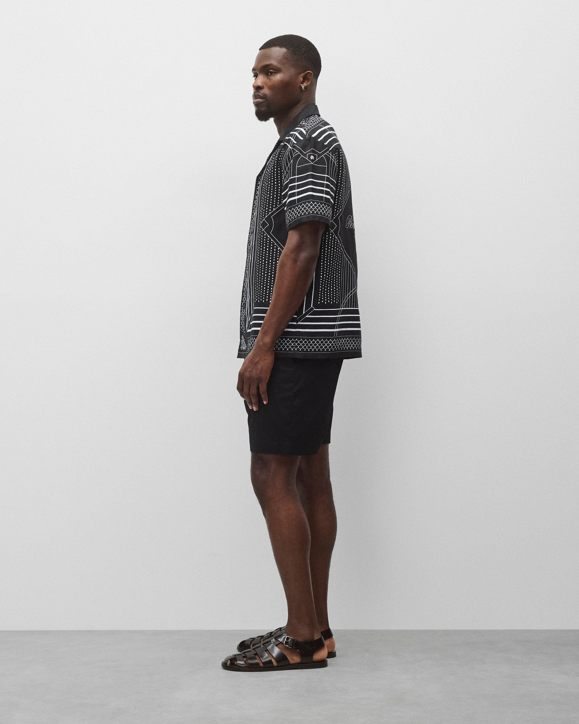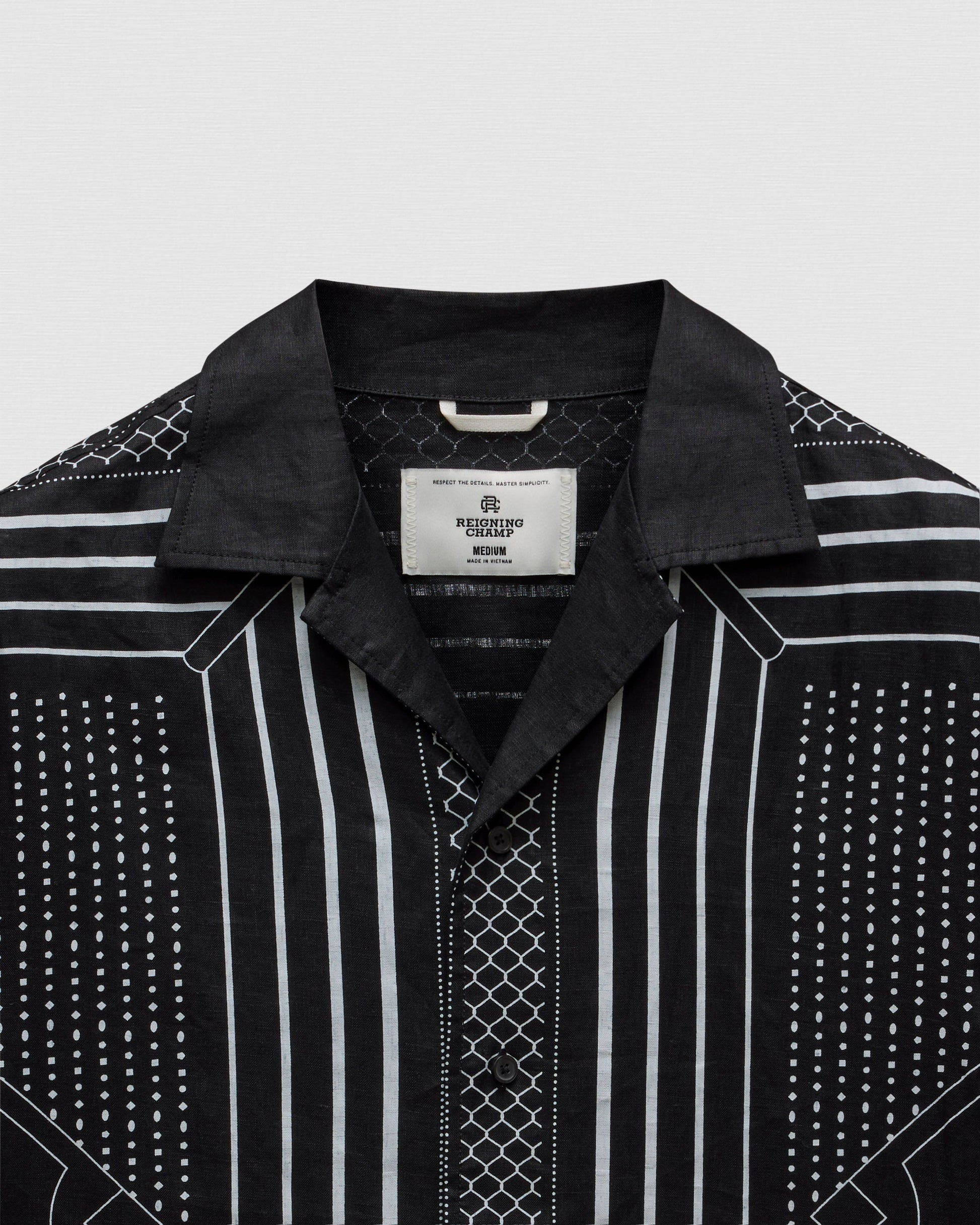 Raise your game in this printed camp collar shirt, crafted from airy, lightweight linen. Ideal in warmer weather and cut in a standard fit for versatile wear. Designed with a clean placket, faux shell buttons, and a flat hem.