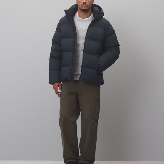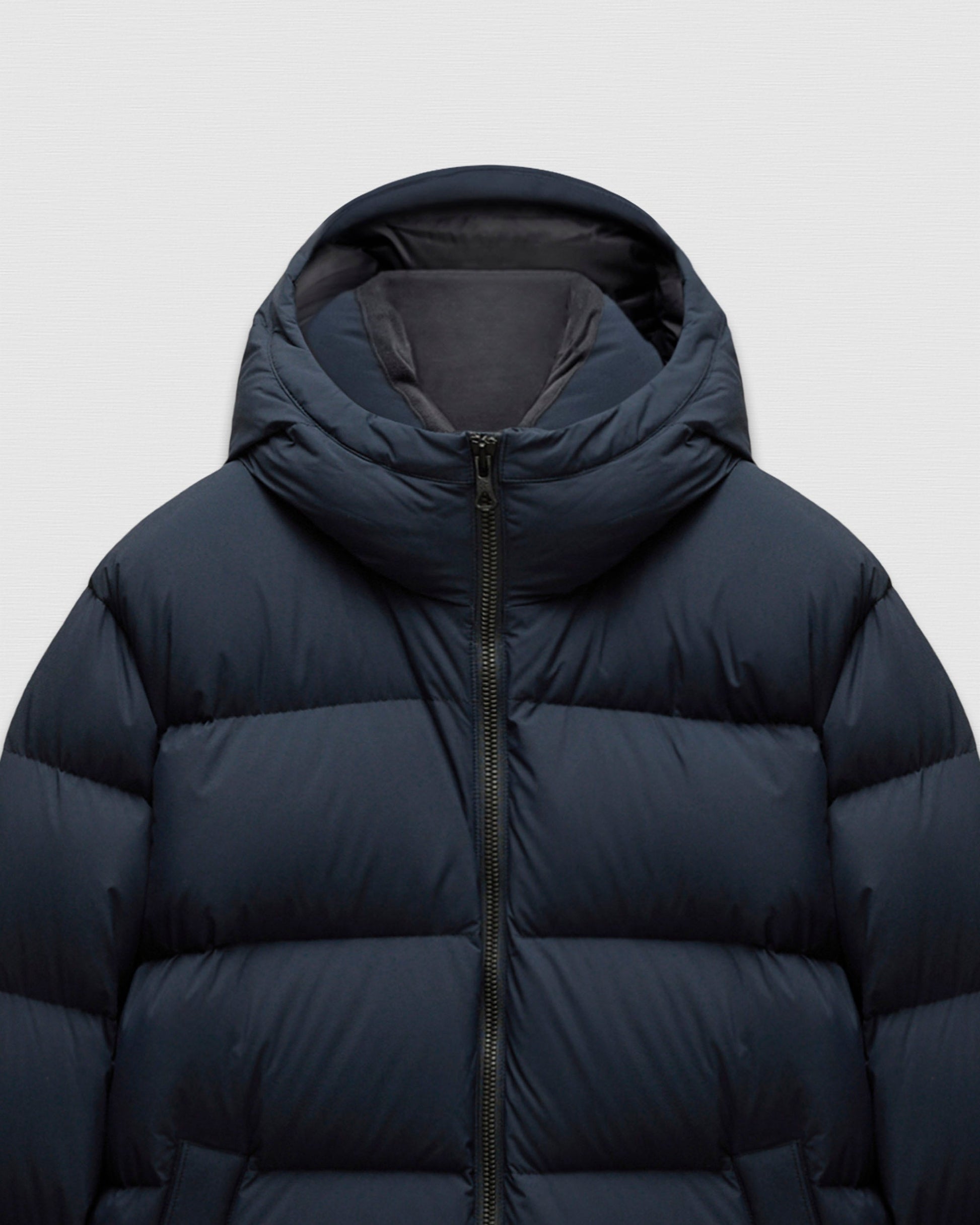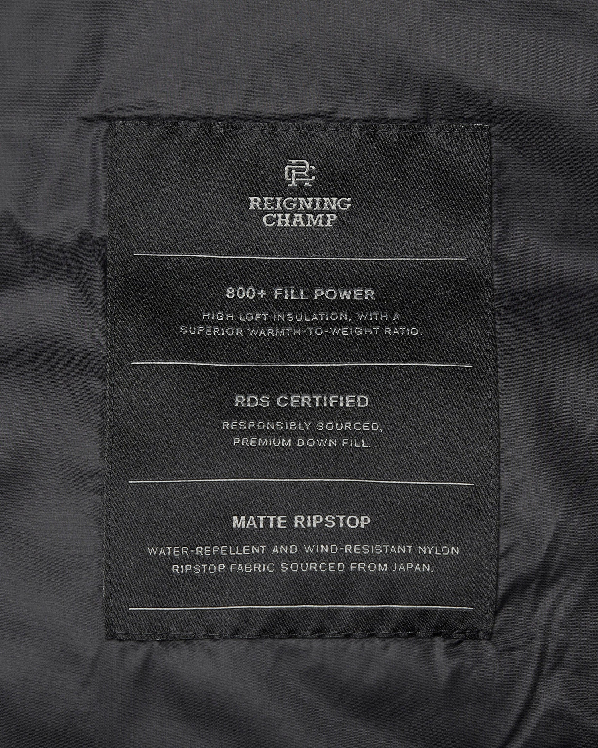 This RDS-certified goose down puffer jacket is built for unrivaled cold weather protection. Featuring 800+ fill power for a high warmth-to-weight ratio and a water-repellent, premium nylon shell. Constructed with a generous standard fit, a shock cord hood, YKK Metaluxe zippers, hidden stretch rib cuffs, and an adjustable shock cord hem.