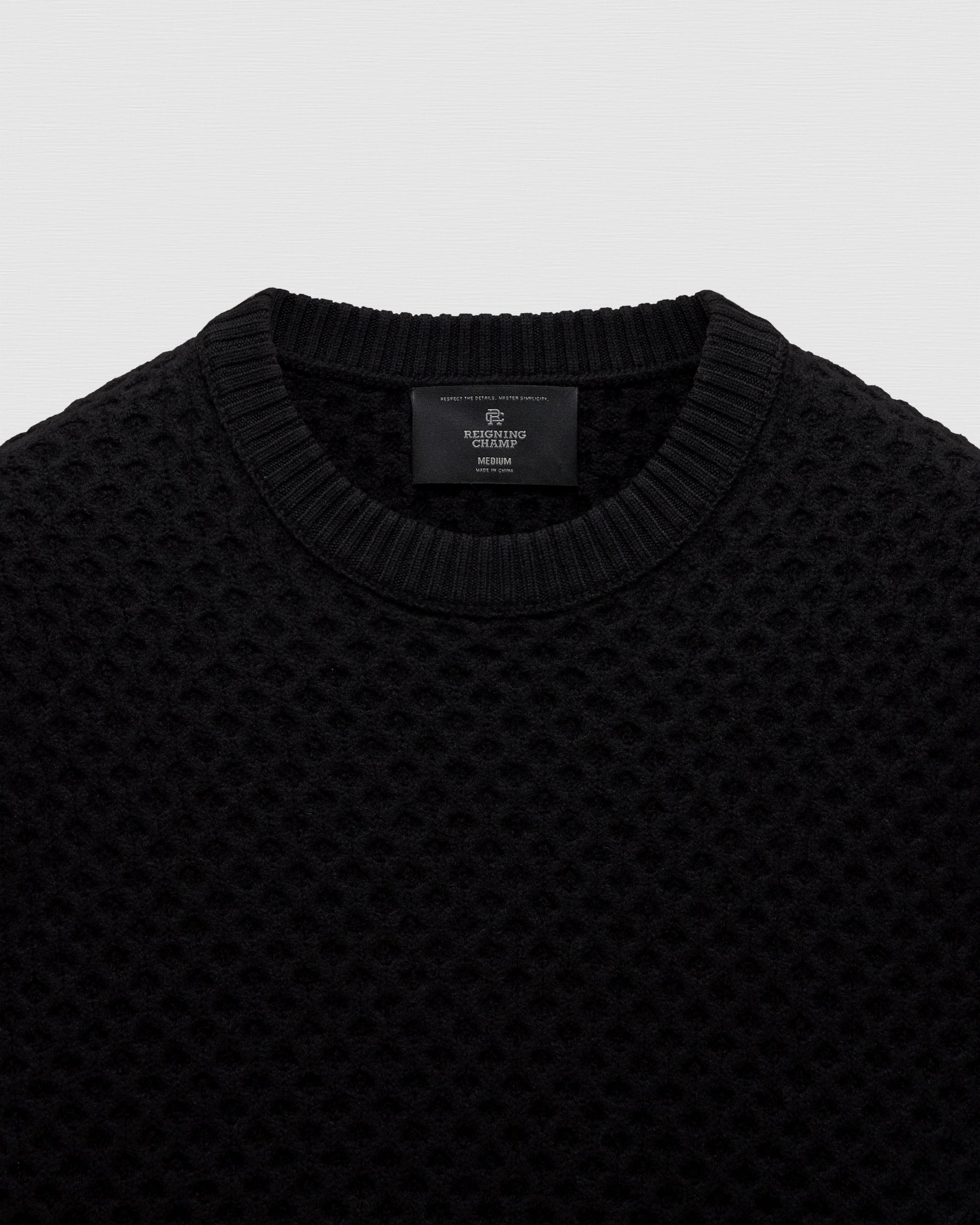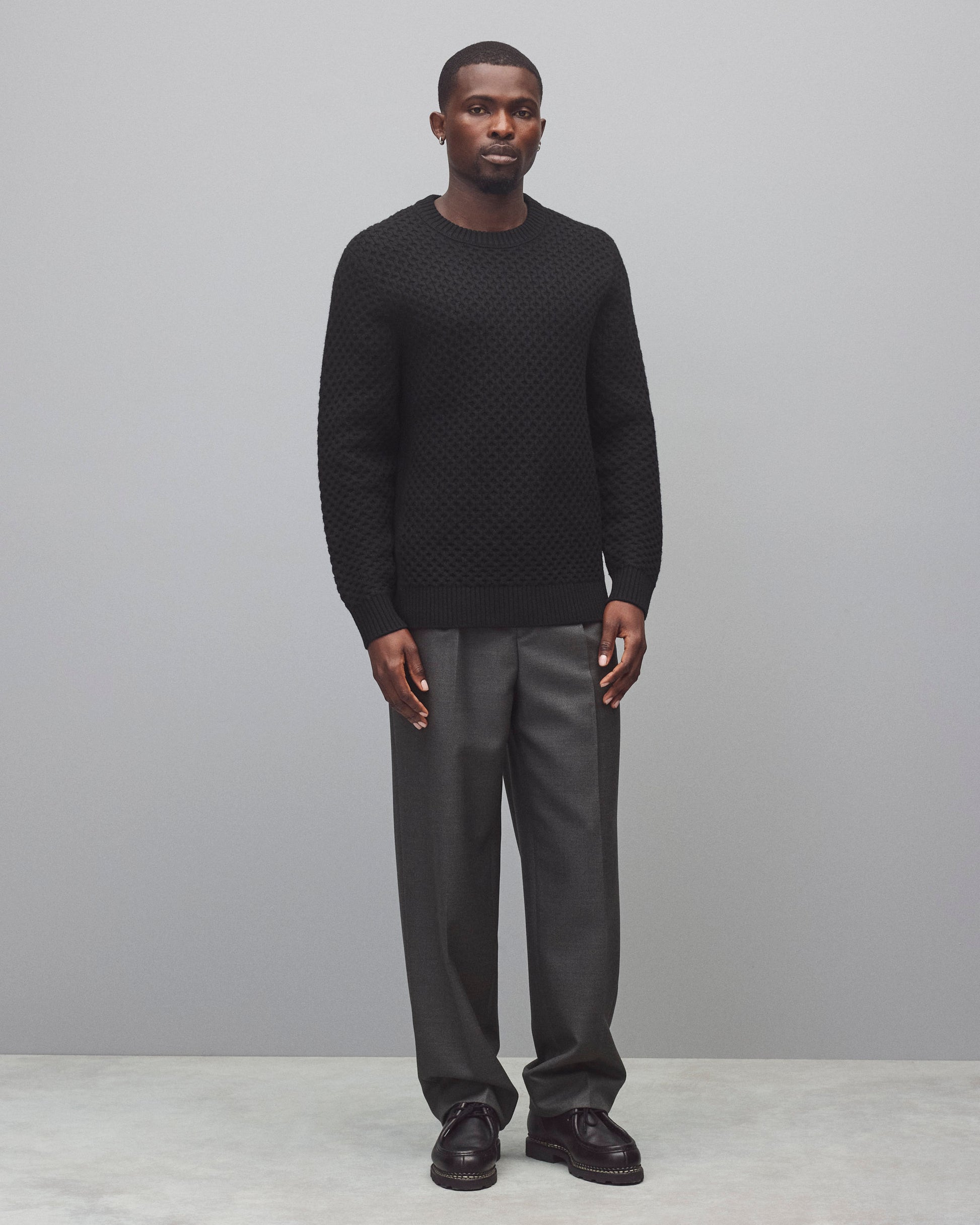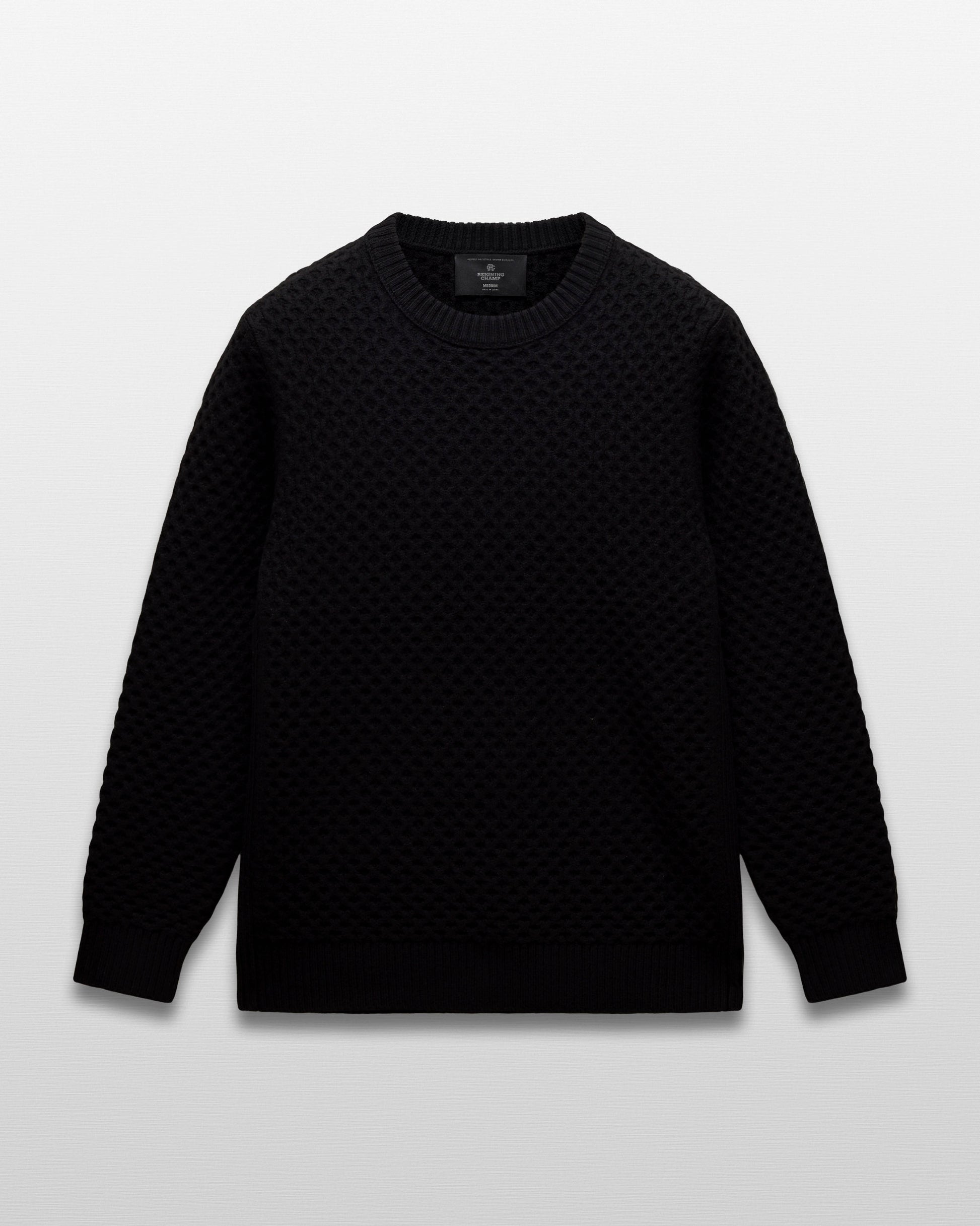 This crewneck sweater is crafted from honeycomb-stitched merino wool milled in Italy. Featuring a standard fit, with fully fashioned seam construction. Designed with 2x2 rib knit collar, cuffs, side panels and hem.