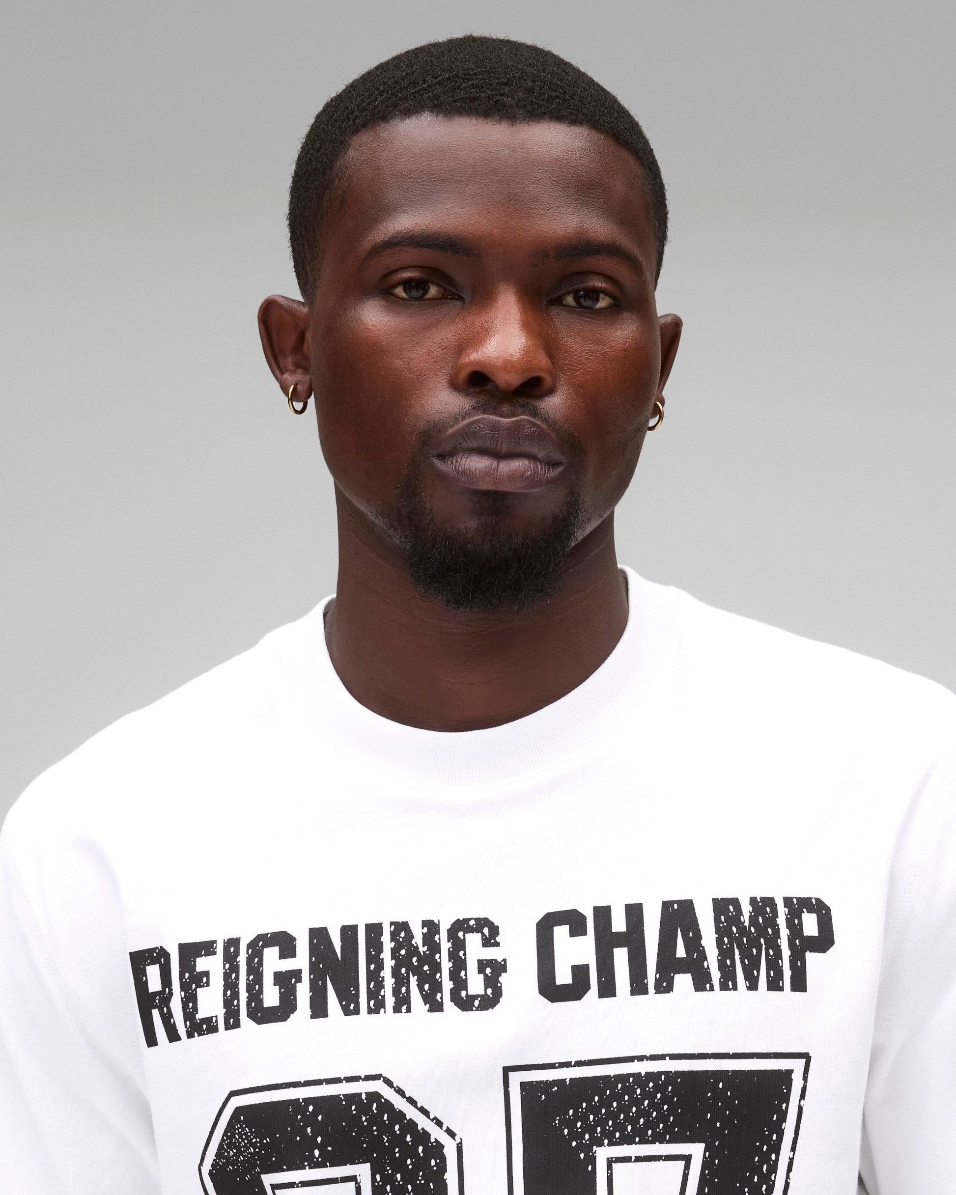 A seasonal graphic tee drawing inspiration from classic team uniforms. Crafted from premium Midweight Jersey with a standard athletic fit and signature construction details.