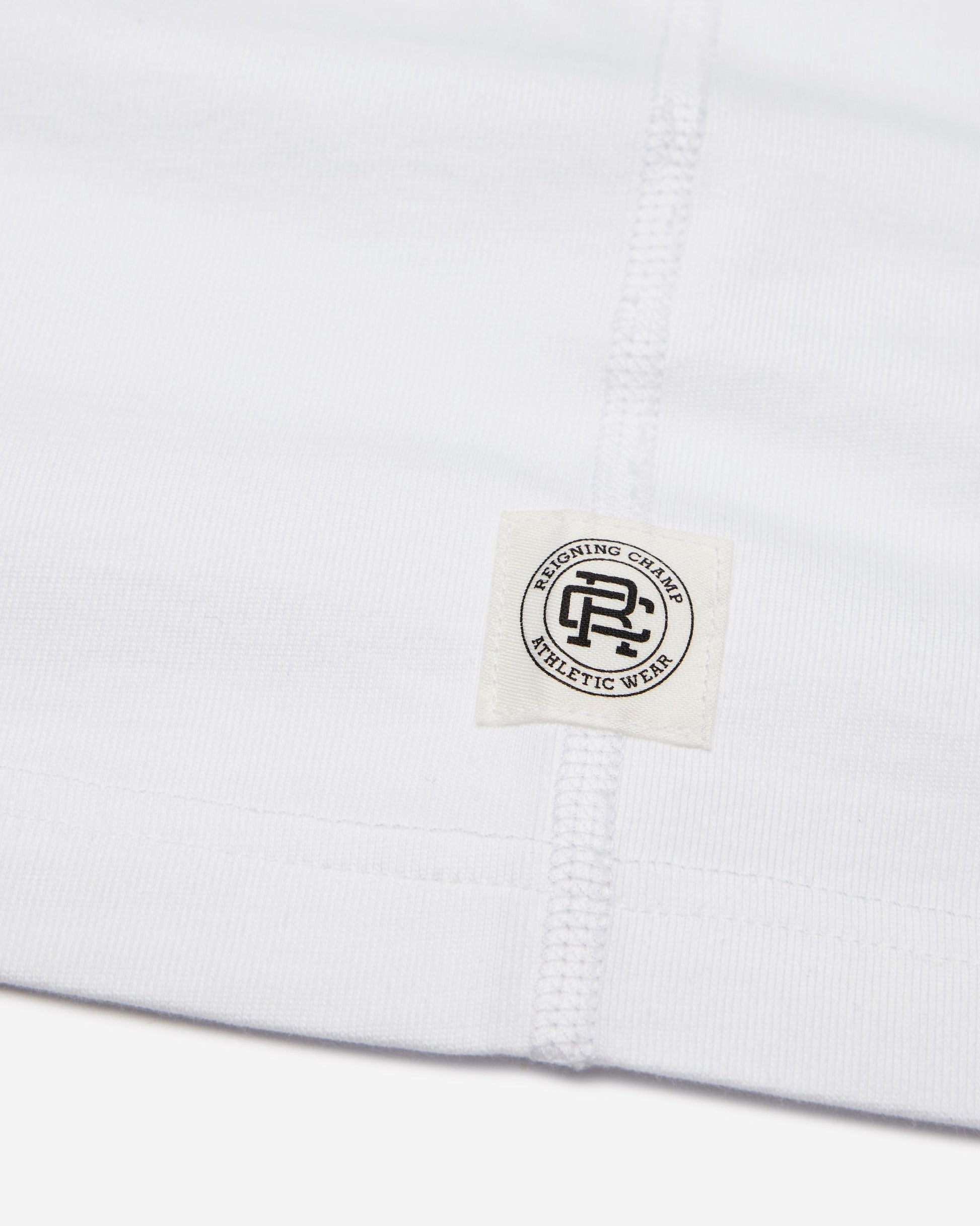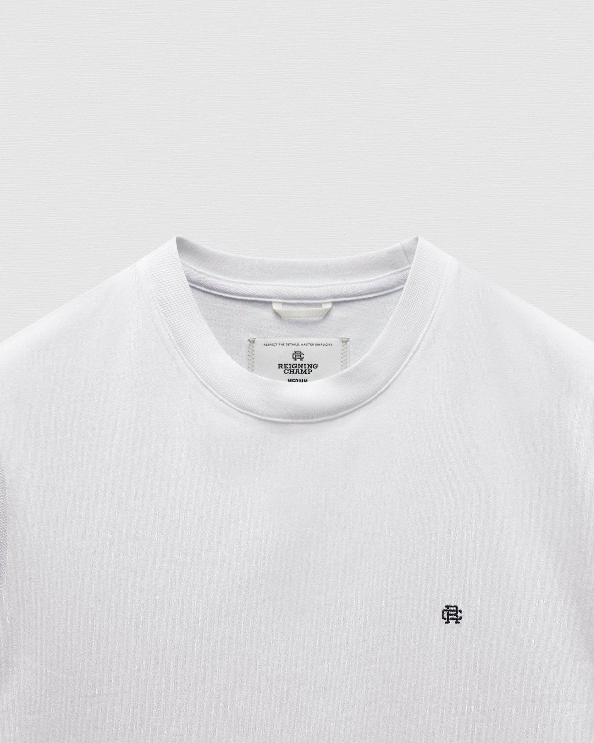 This short sleeve T-shirt is made from premium Midweight Jersey, featuring our embroidered monogram logo on the chest. Designed in the OG standard fit, with slightly dropped shoulders and a straight silhouette through the torso. Details include a rib collar, set-in sleeves, and signature flatlock construction.