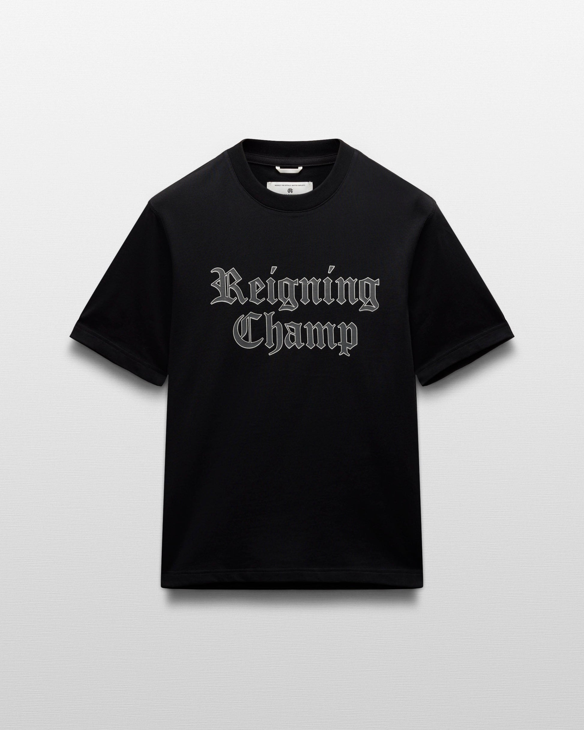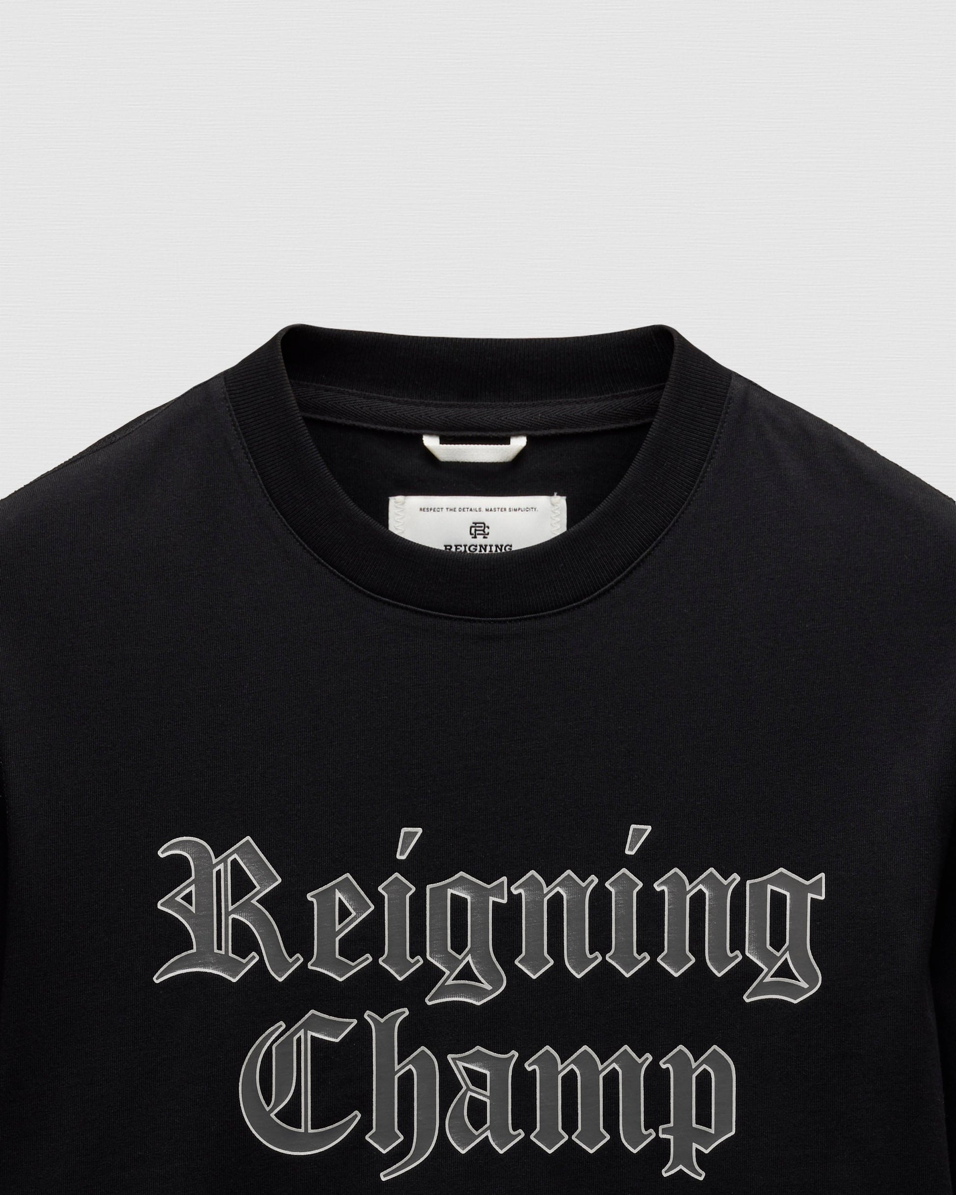 This short sleeve T-shirt is made from premium Midweight Jersey, featuring our remixed logo in an antique script. Designed in the OG standard fit, with slightly dropped shoulders and a straight silhouette through the torso. Details include a rib collar, set-in sleeves, and signature flatlock construction.