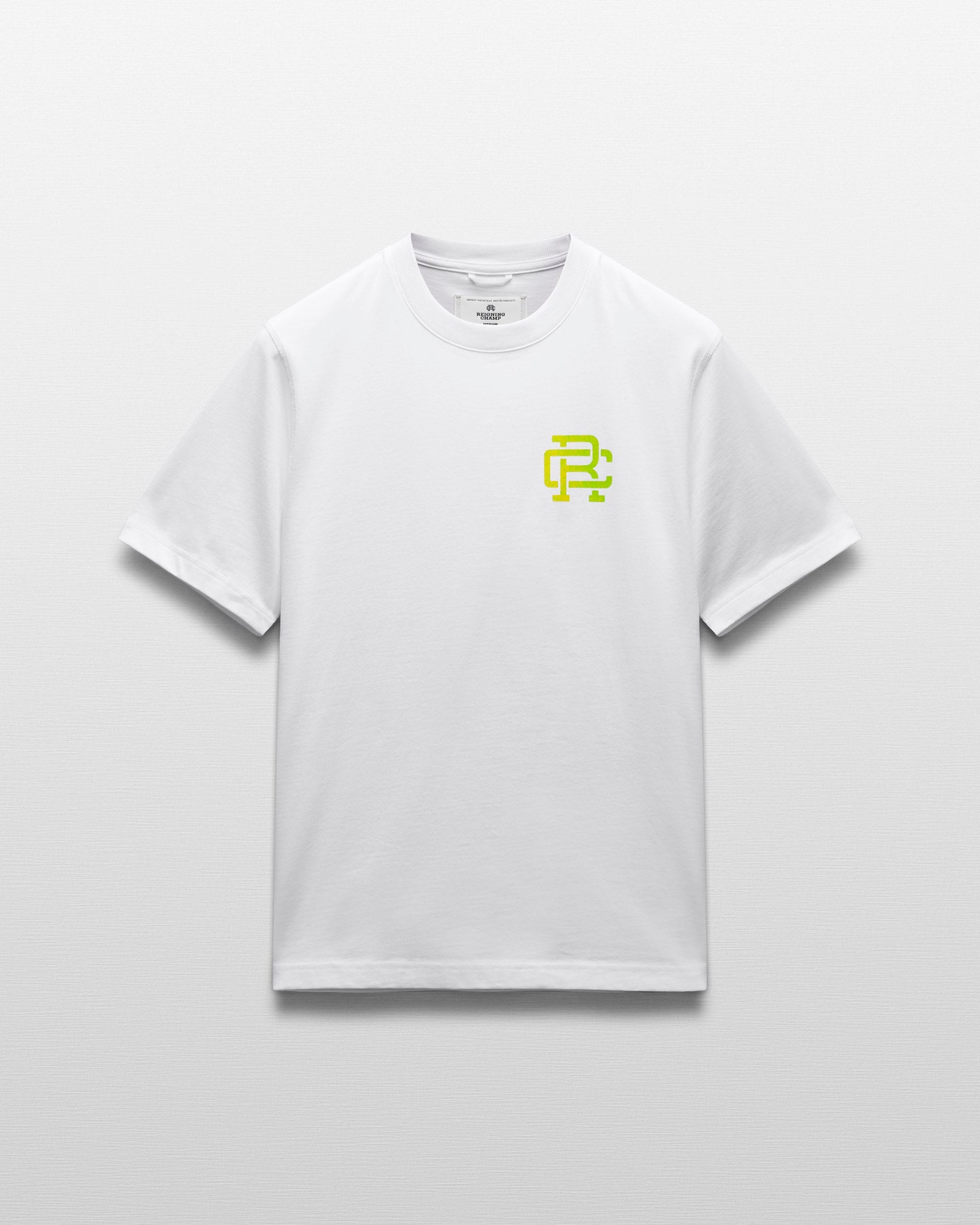 This short sleeve T-shirt is made from premium Midweight Jersey, featuring our neon spray graphic logos on the front and back. Designed in the OG standard fit, with slightly dropped shoulders and a straight silhouette through the torso. Details include a rib collar, set-in sleeves, and signature flatlock construction.
