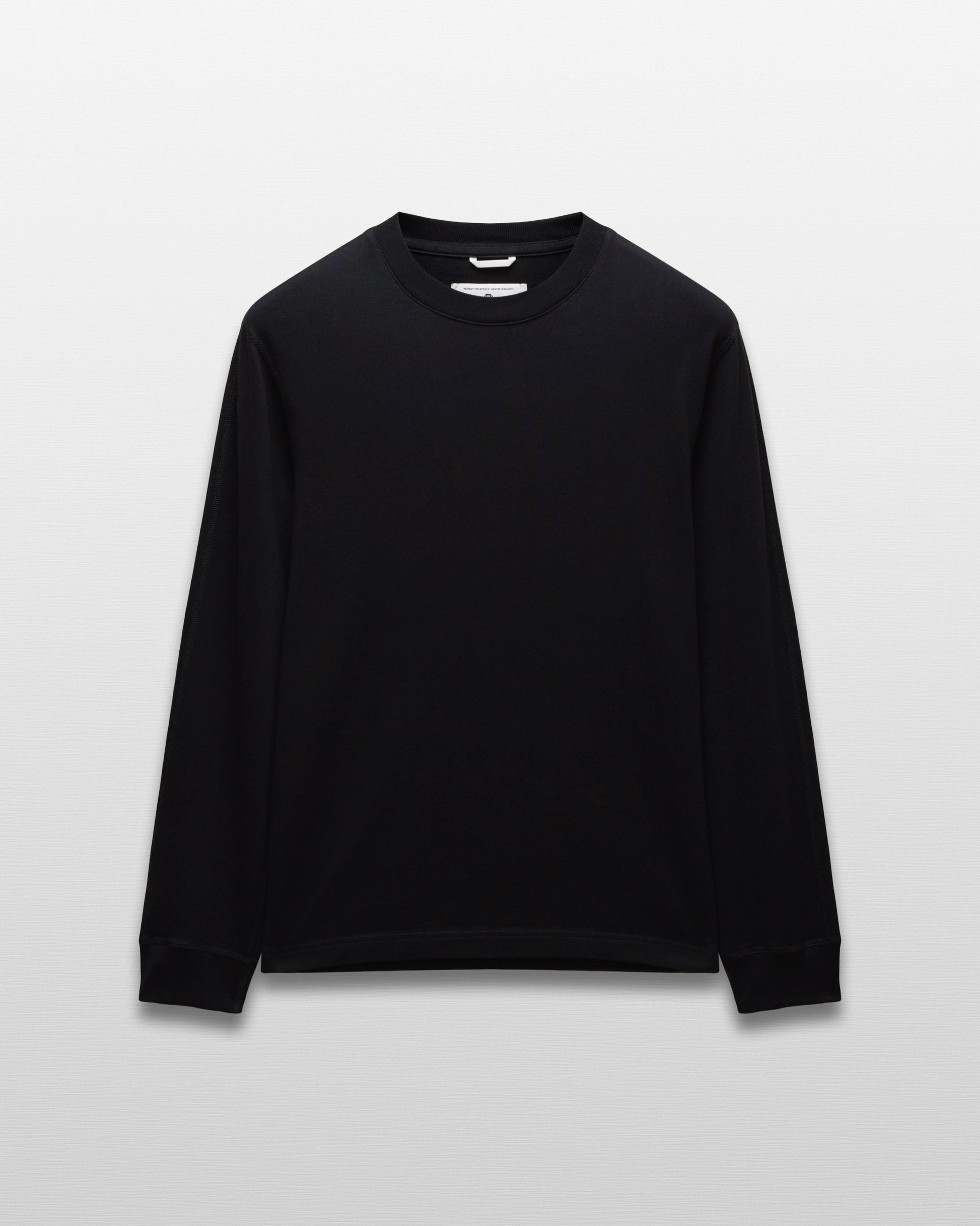 Our midweight long sleeve T-shirt is made from premium cotton, balancing substantial structure with a soft hand. Featuring a standard fit that tapers slightly from the chest to the waist hem. Designed with a wide rib collar, semi-raglan sleeves, and signature flatlock construction.