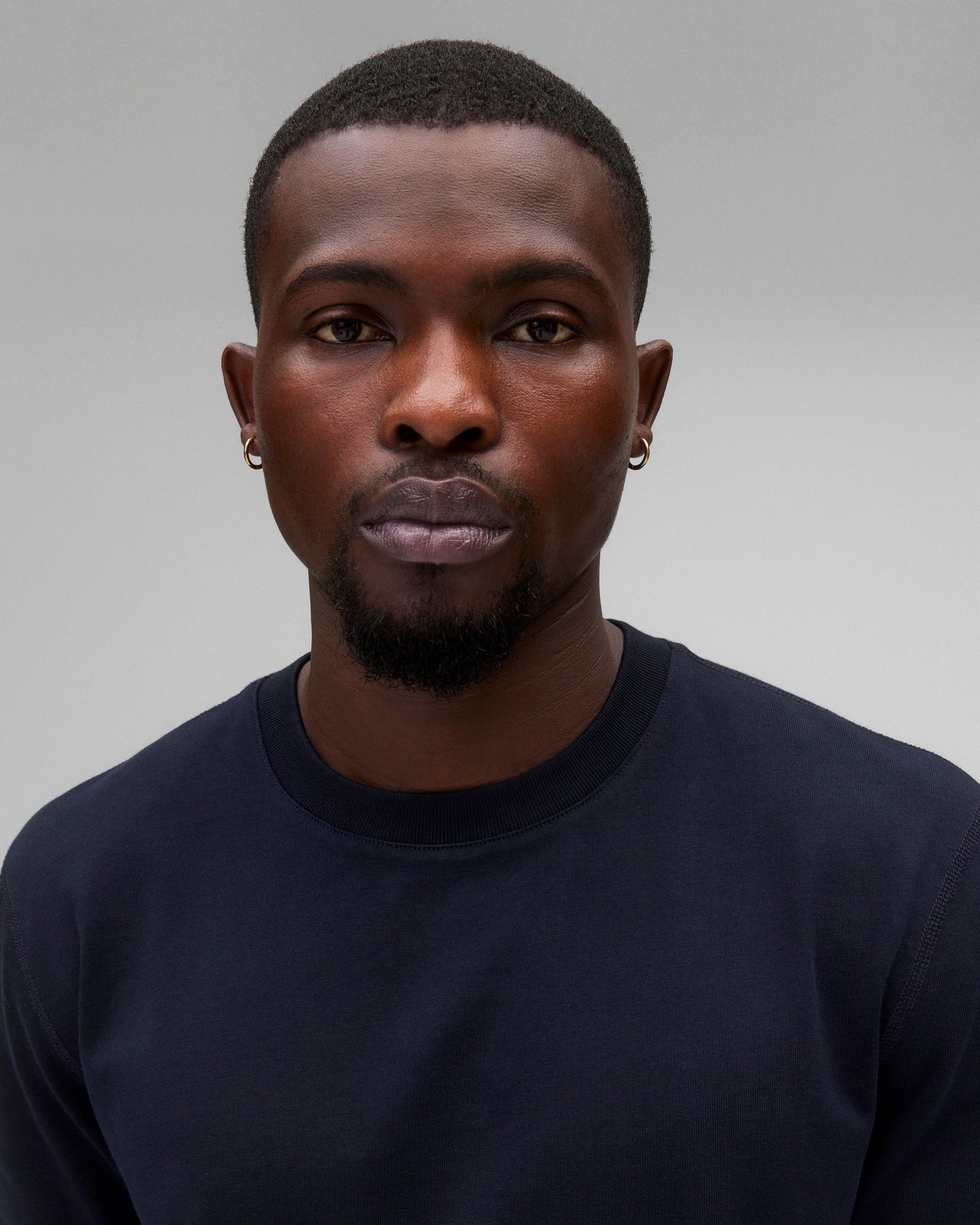 Our midweight short sleeve T-shirt is made from premium cotton, balancing substantial structure with a soft hand. Featuring a standard fit that tapers slightly from the chest to the waist hem. Designed with a wide rib collar, set-in sleeves, and signature flatlock construction.