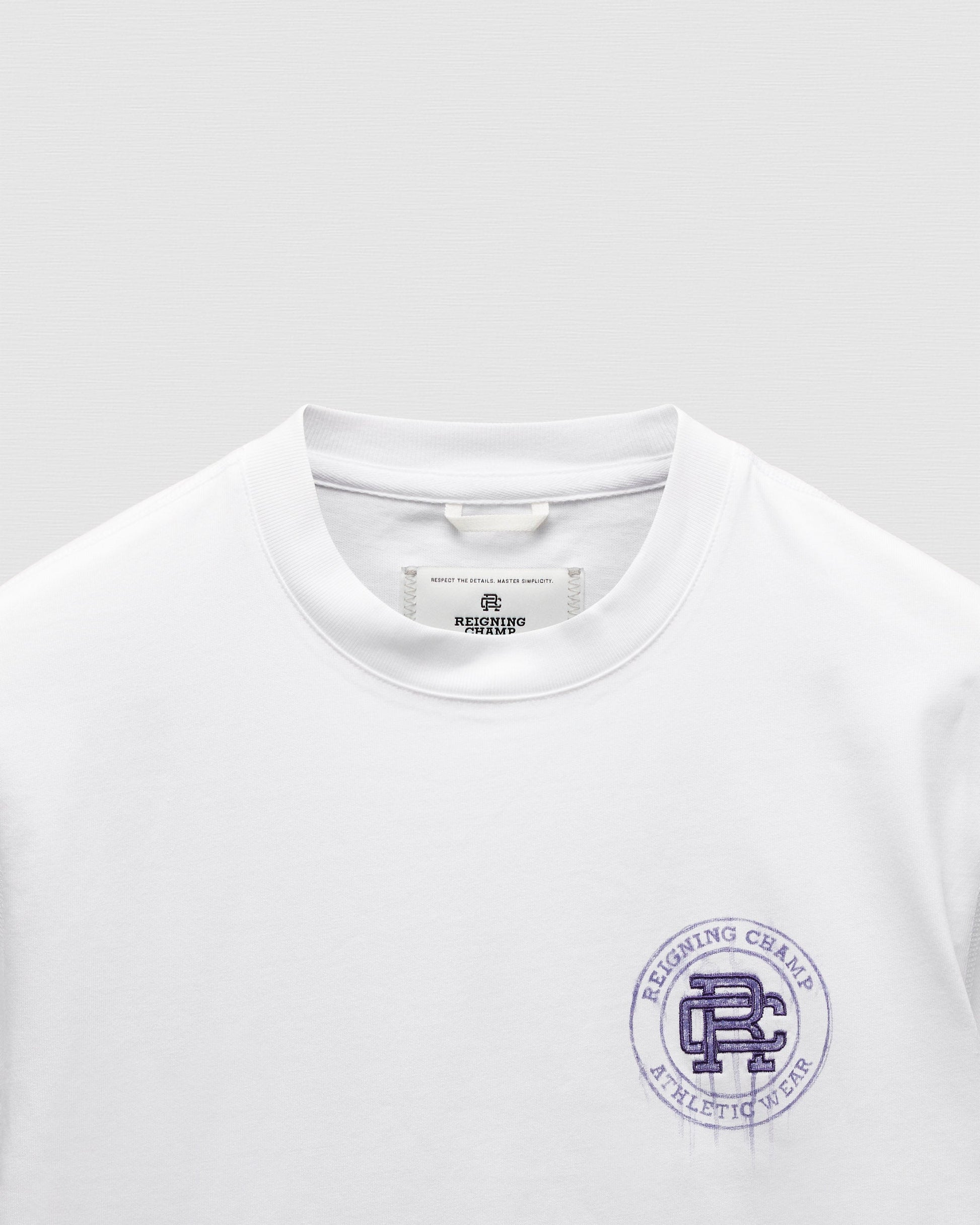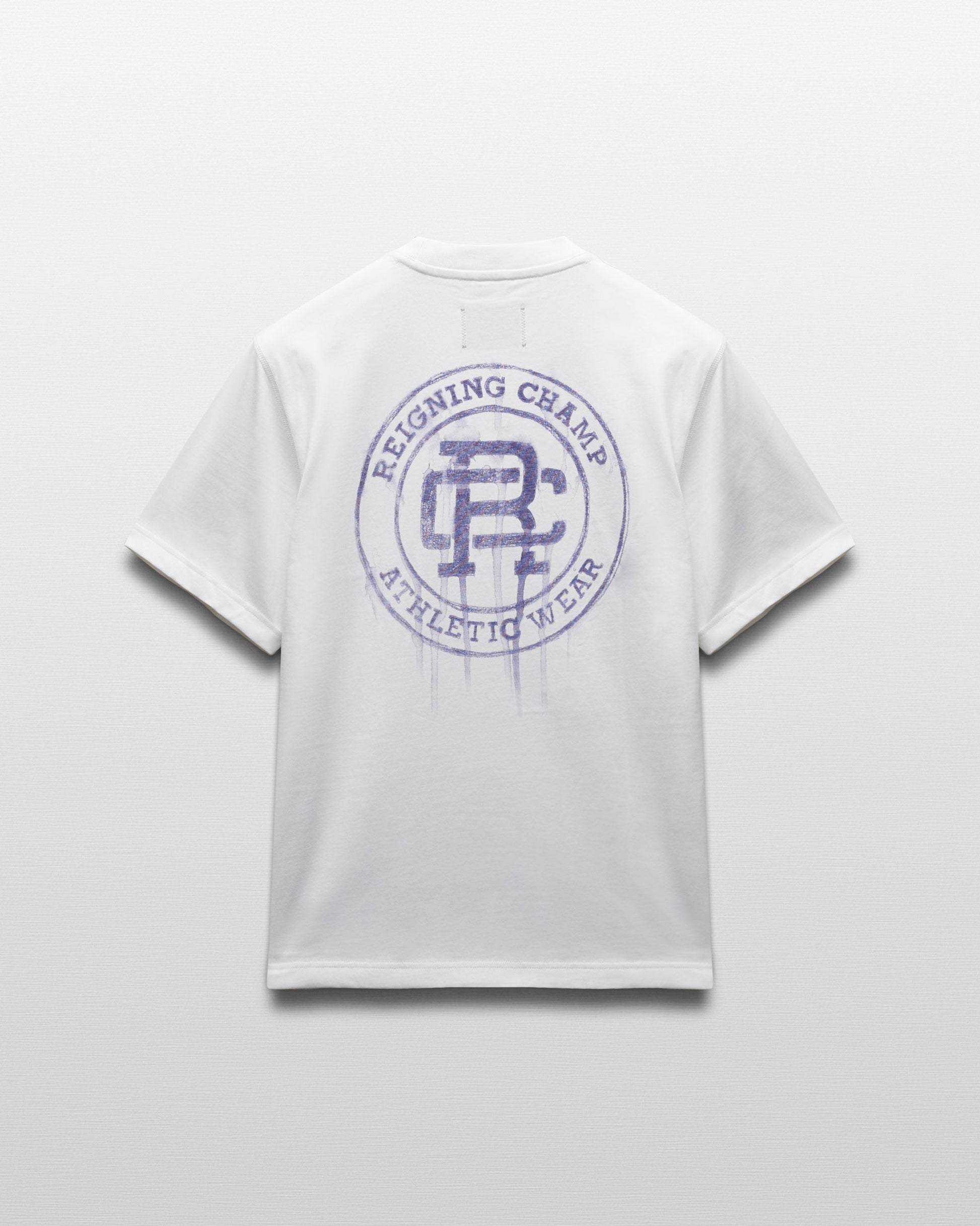 This short sleeve T-shirt is made from premium Midweight Jersey, featuring our crest logo remixed with a watercolour drip effect. Designed in the OG standard fit, with slightly dropped shoulders and a straight silhouette through the torso. Details include a rib collar, set-in sleeves, and signature flatlock construction.