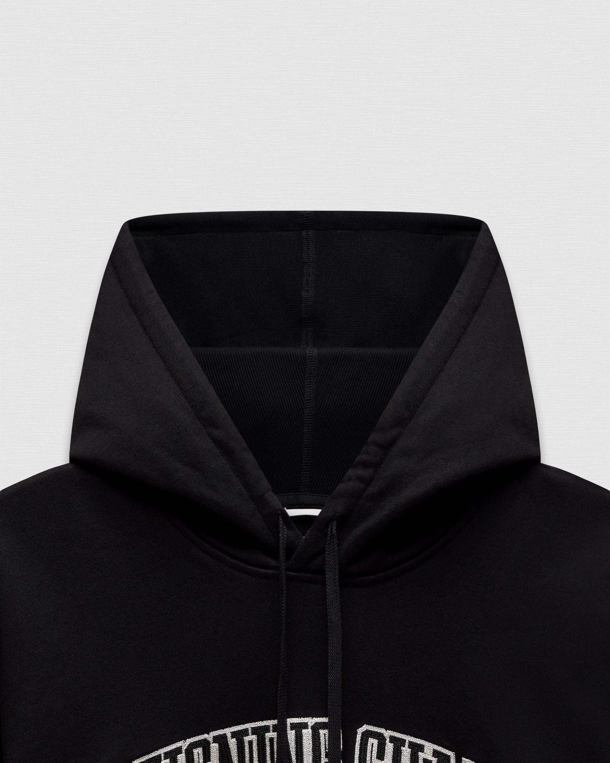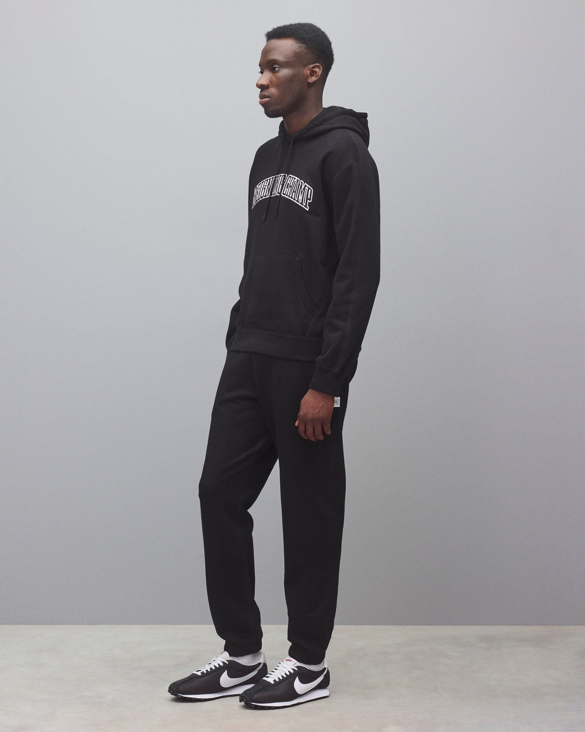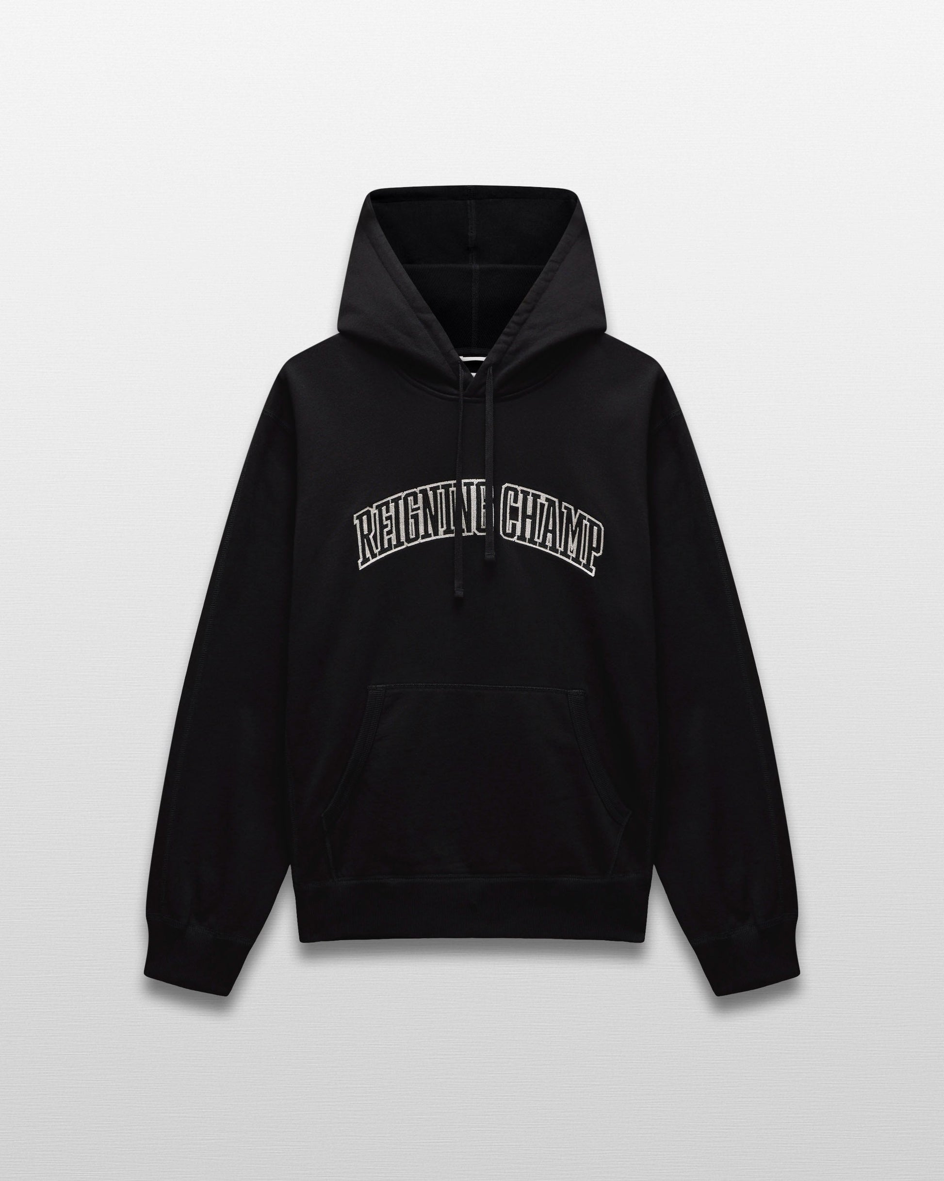 This embroidered pullover hoodie is made from premium Midweight Terry, featuring our collegiate arc logo at center chest. Designed with a standard fit through the shoulders and torso for a balanced silhouette. Detailed with a rib-lined hood, semi-raglan sleeves, premium rib, side gussets, and signature flatlock construction.