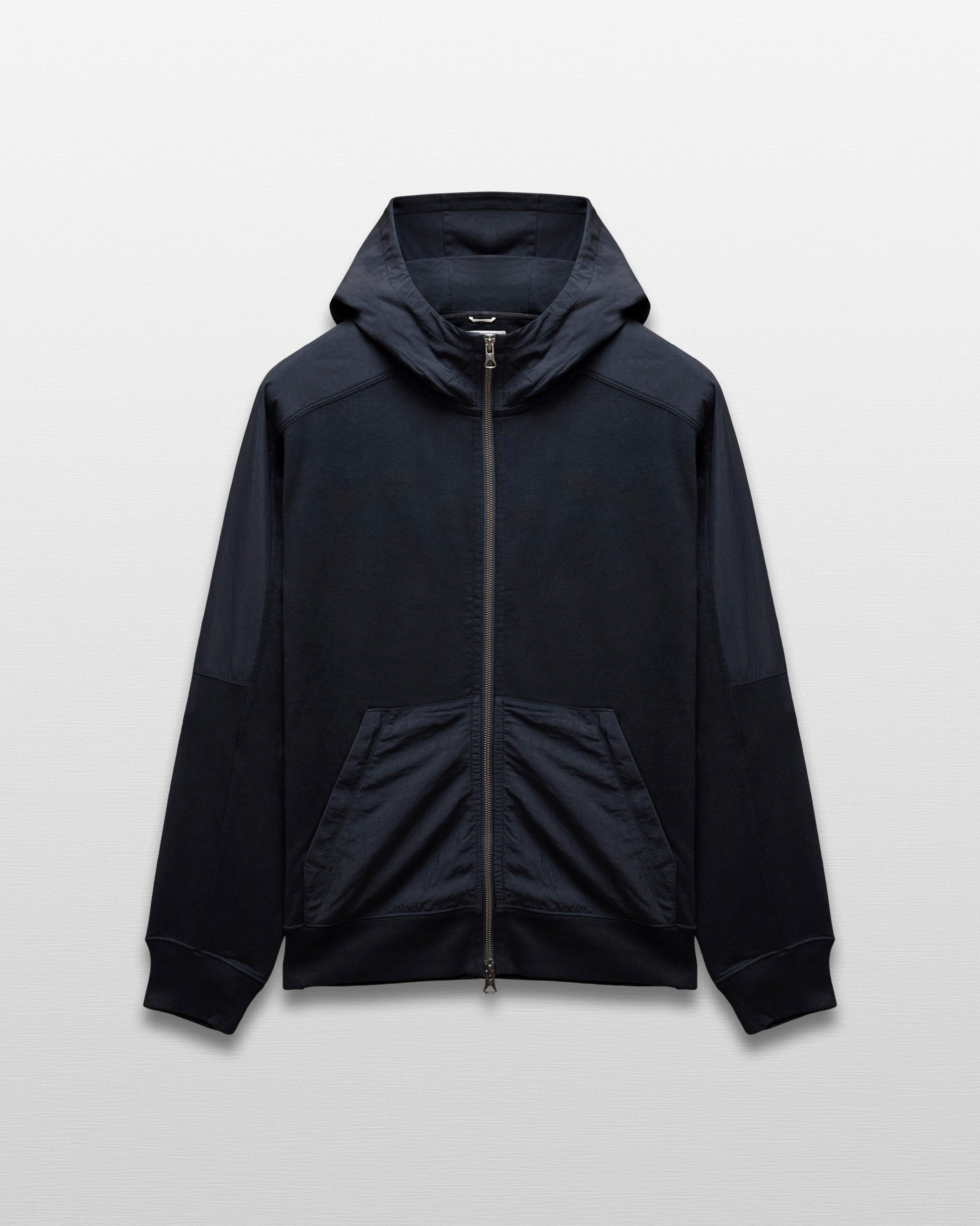 This hybrid hoodie combines our signature Midweight Terry with water-repellent nylon overlays for light protection. Designed with a standard athletic fit for a balanced silhouette. Featuring a scuba hood, YKK two-way metal zipper, shoulder yoke, secure zip pockets, and flatlock seams for lasting durability.
