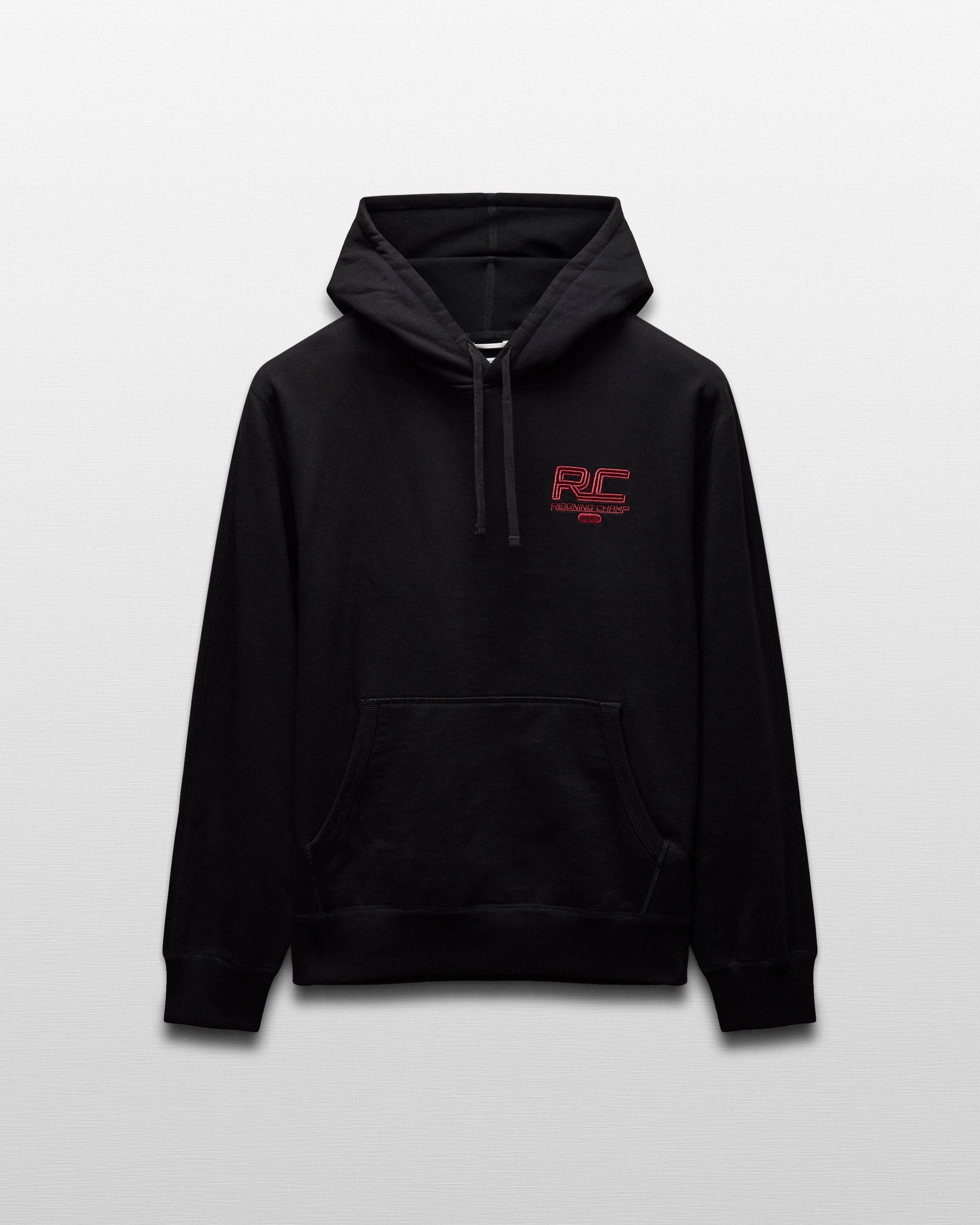 This embroidered pullover hoodie is crafted from premium Midweight Terry, featuring a remixed logo inspired by iconic motorsport designs. Designed with a standard athletic fit through the shoulders and torso for a balanced silhouette. Details include a rib-lined hood, semi-raglan sleeves, premium rib, side gussets, and signature flatlock construction.