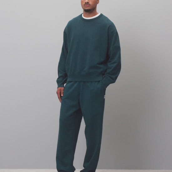 Our relaxed-fit sweatpant is made from premium Midweight Terry for an ideal balance of comfort, structure and drape. Designed with a generous, wide cut silhouette, jersey-lined pockets, flatlock seams, and drawcord cuffs.