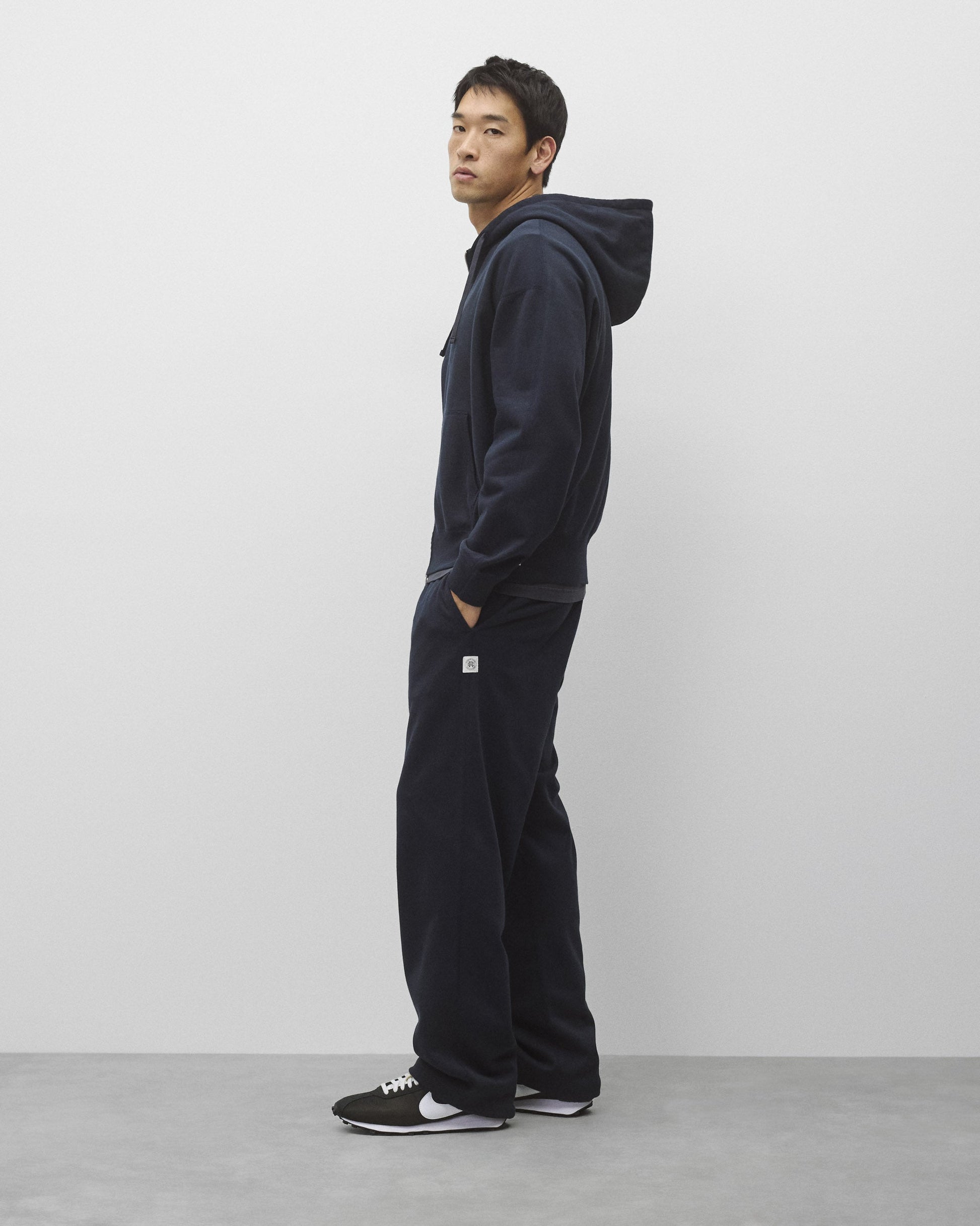 Our relaxed-fit sweatpant is made from premium Midweight Terry for an ideal balance of comfort, structure and drape. Designed with a generous, wide cut silhouette, jersey-lined pockets, flatlock seams, and drawcord cuffs.