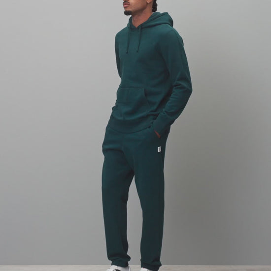 Our signature pullover hoodie is made from premium Midweight Terry for an ideal balance of comfort and structure. Designed with a trim athletic fit, a dual-layer hood, semi-raglan sleeves, a rib-bound front pocket, premium rib, and signature flatlock construction.