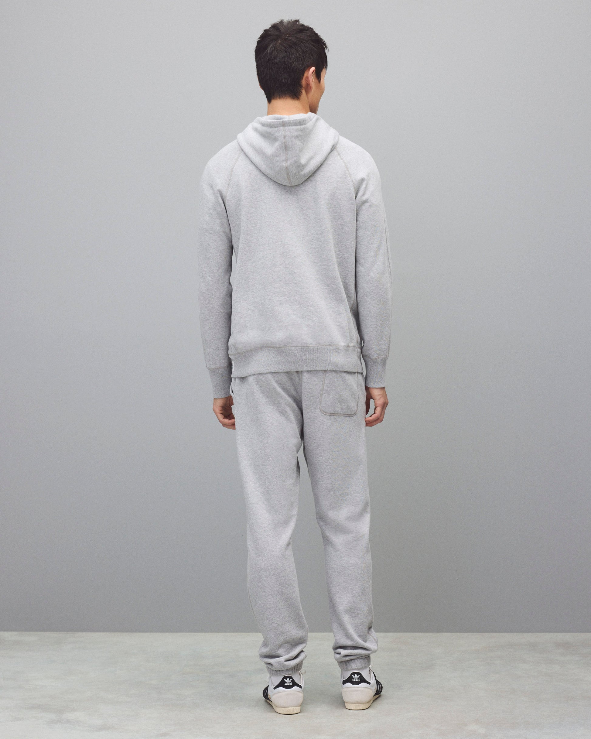 Our signature pullover hoodie is made from premium Midweight Terry for an ideal balance of comfort and structure. Designed with a trim athletic fit, a dual-layer hood, semi-raglan sleeves, a rib-bound front pocket, premium rib, and signature flatlock construction.