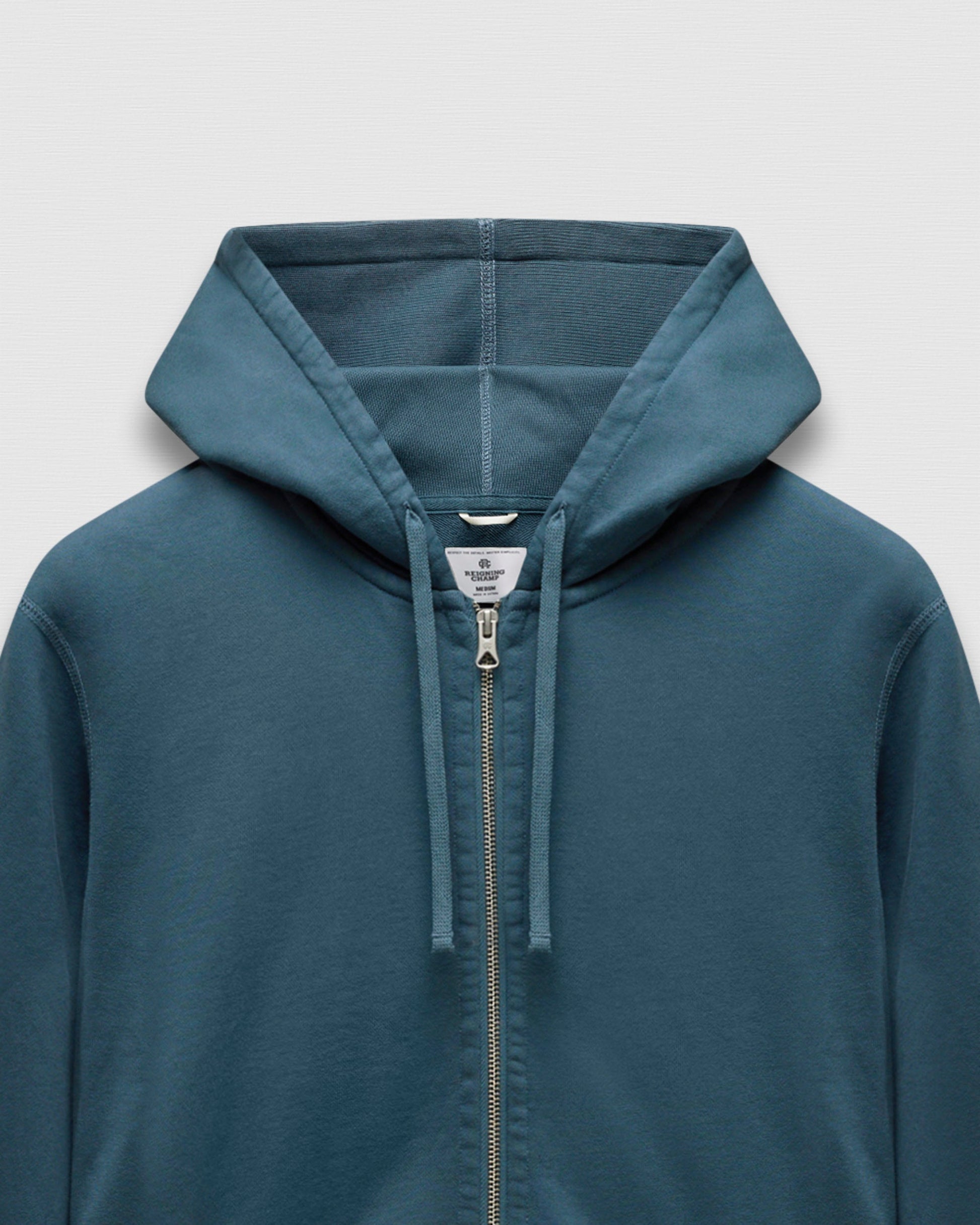 Our signature zip hoodie is made from premium Midweight Terry for an ideal balance of comfort and structure. Designed with a trim athletic fit, a dual-layer hood, semi-raglan sleeves, a heavy gauge two-way YKK zipper, a rib-bound front pocket, premium rib, and signature flatlock construction.