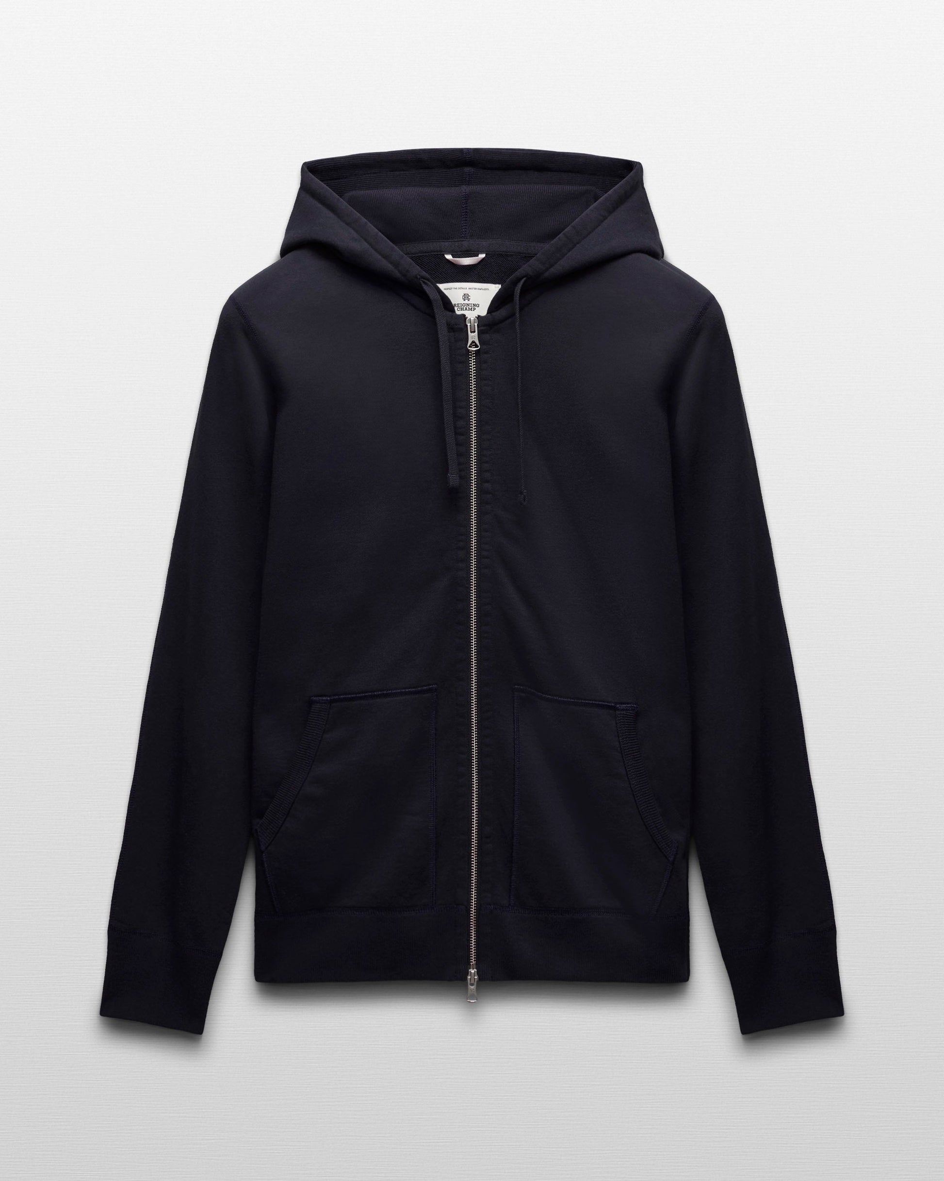 Our signature zip hoodie is made from premium Midweight Terry for an ideal balance of comfort and structure. Designed with a trim athletic fit, a dual-layer hood, semi-raglan sleeves, a heavy gauge two-way YKK zipper, a rib-bound front pocket, premium rib, and signature flatlock construction.