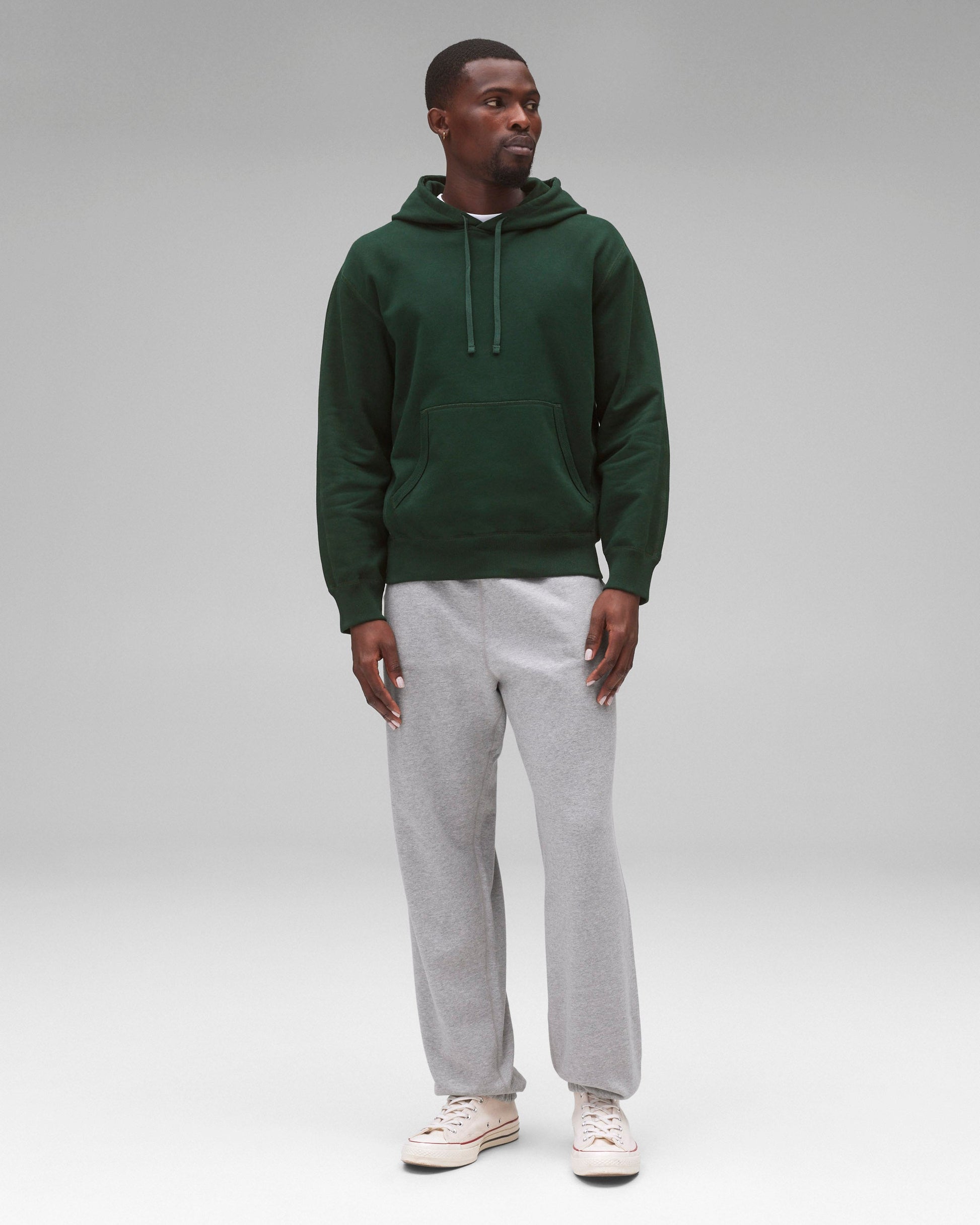 Our standard-fit pullover hoodie falls between our slim and relaxed silhouettes. Featuring slightly relaxed shoulders, with full-cut sleeves and torso. Made from premium Midweight Terry for an ideal balance of comfort and structure. Designed with a dual-layer hood, a front pocket, premium rib, and signature flatlock construction.