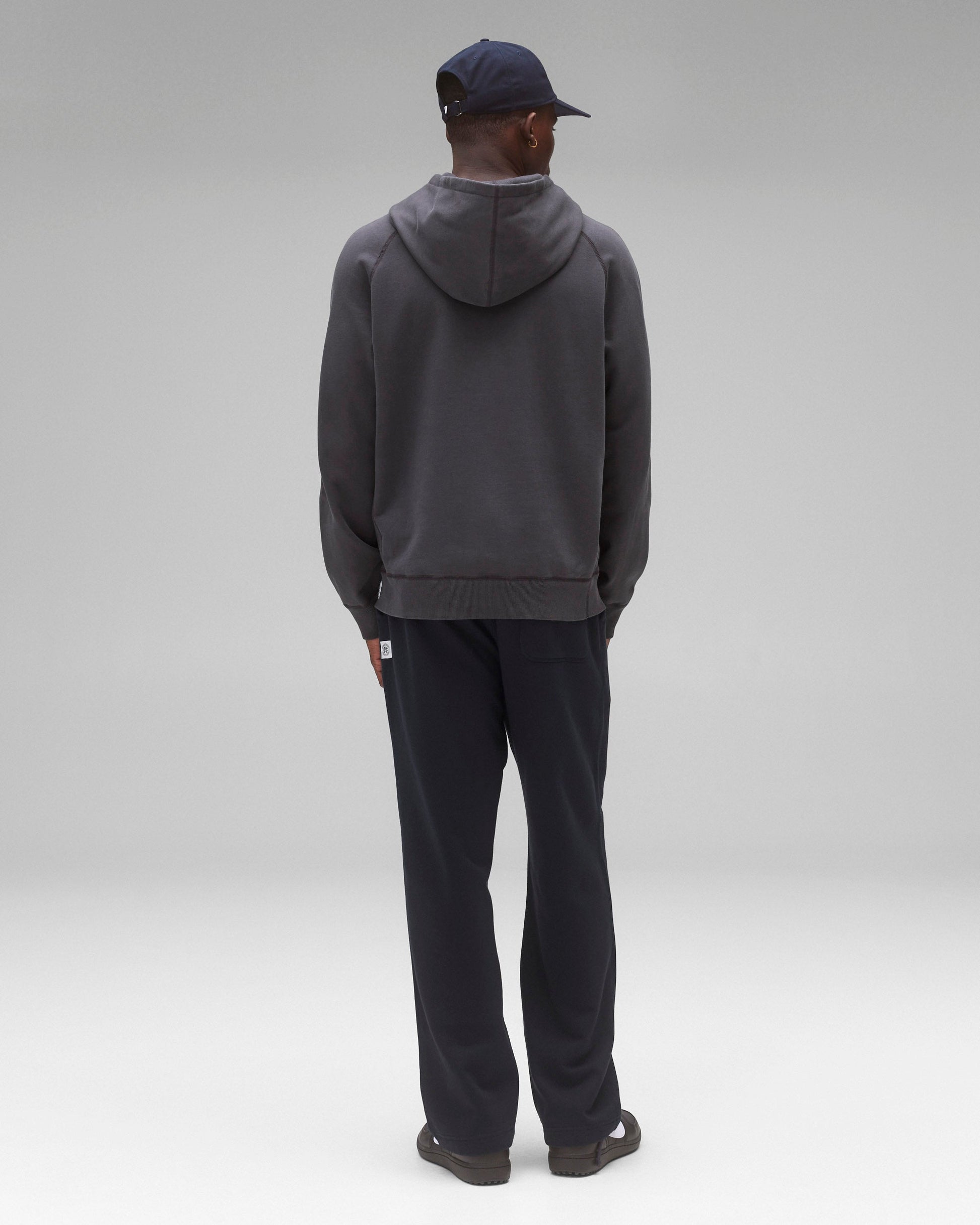Our standard-fit pullover hoodie falls between our slim and relaxed silhouettes. Featuring slightly relaxed shoulders, with full-cut sleeves and torso. Made from premium Midweight Terry for an ideal balance of comfort and structure. Designed with a dual-layer hood, a front pocket, premium rib, and signature flatlock construction.