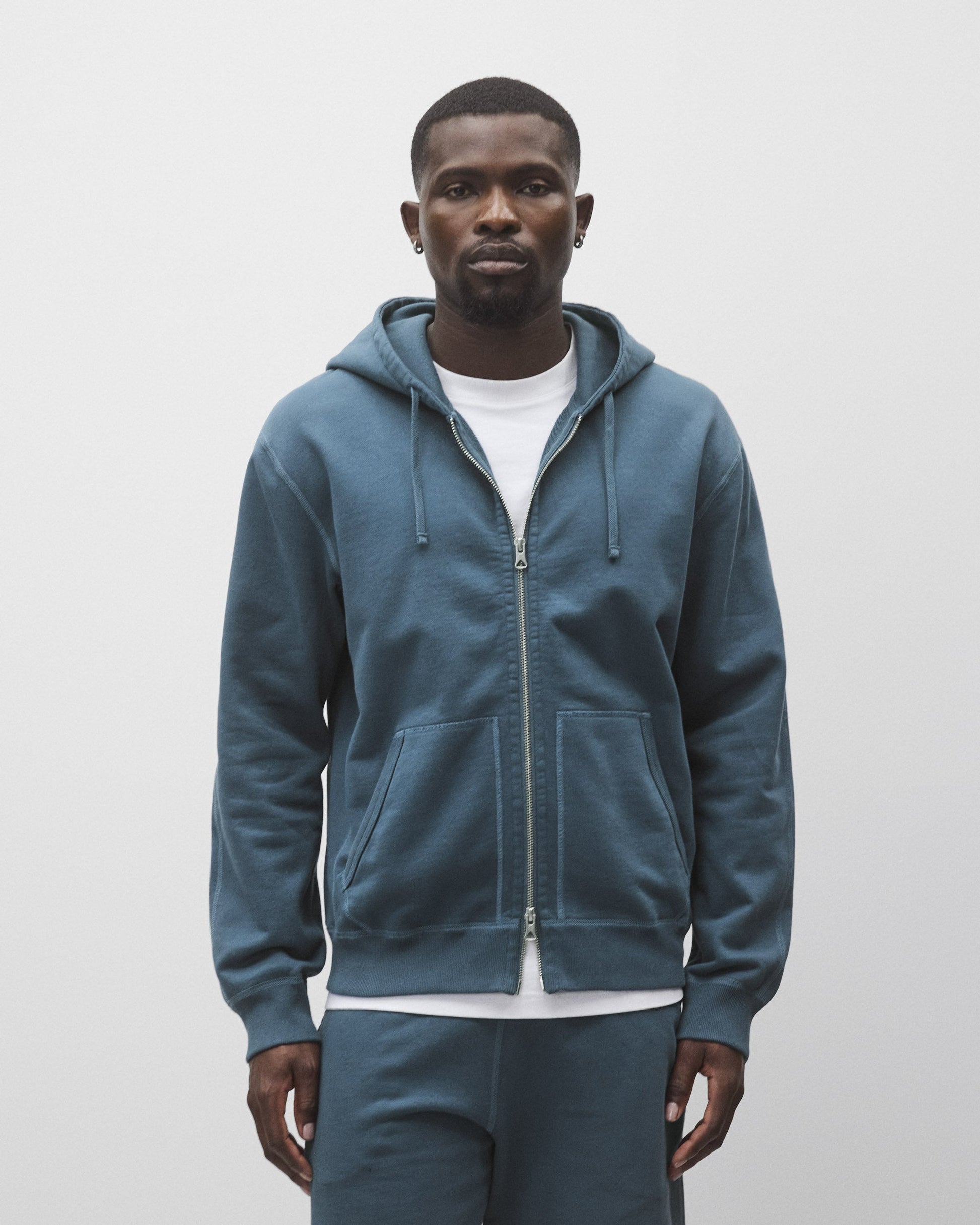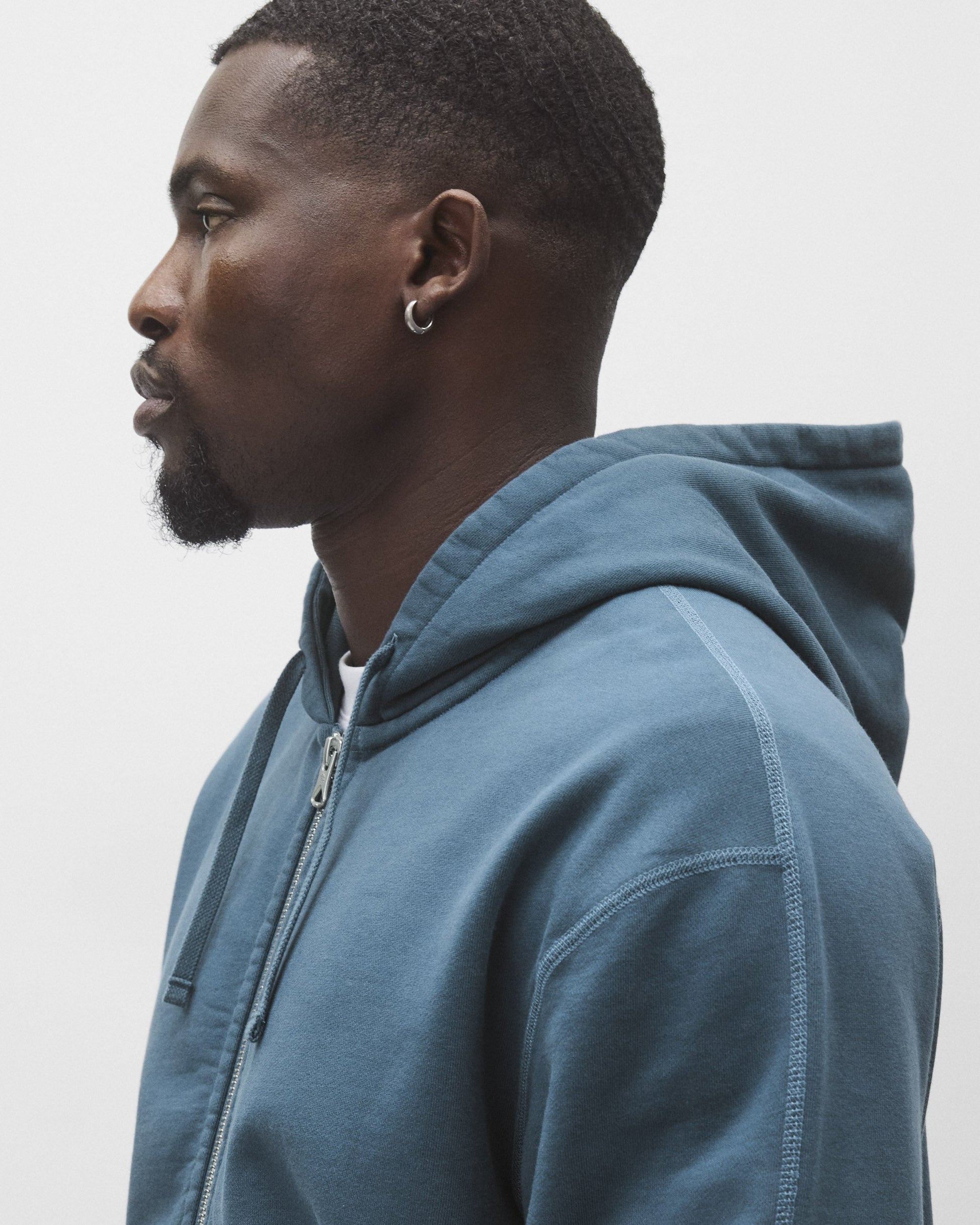 Our standard-fit pullover zip hoodie falls between our slim and relaxed silhouettes. Featuring slightly relaxed shoulders, with full-cut sleeves and torso. Made from premium Midweight Terry for an ideal balance of comfort and structure. Designed with a dual-layer hood, semi-raglan sleeves, a heavy gauge two-way YKK zipper, rib-bound front pockets, premium rib, and signature flatlock construction.