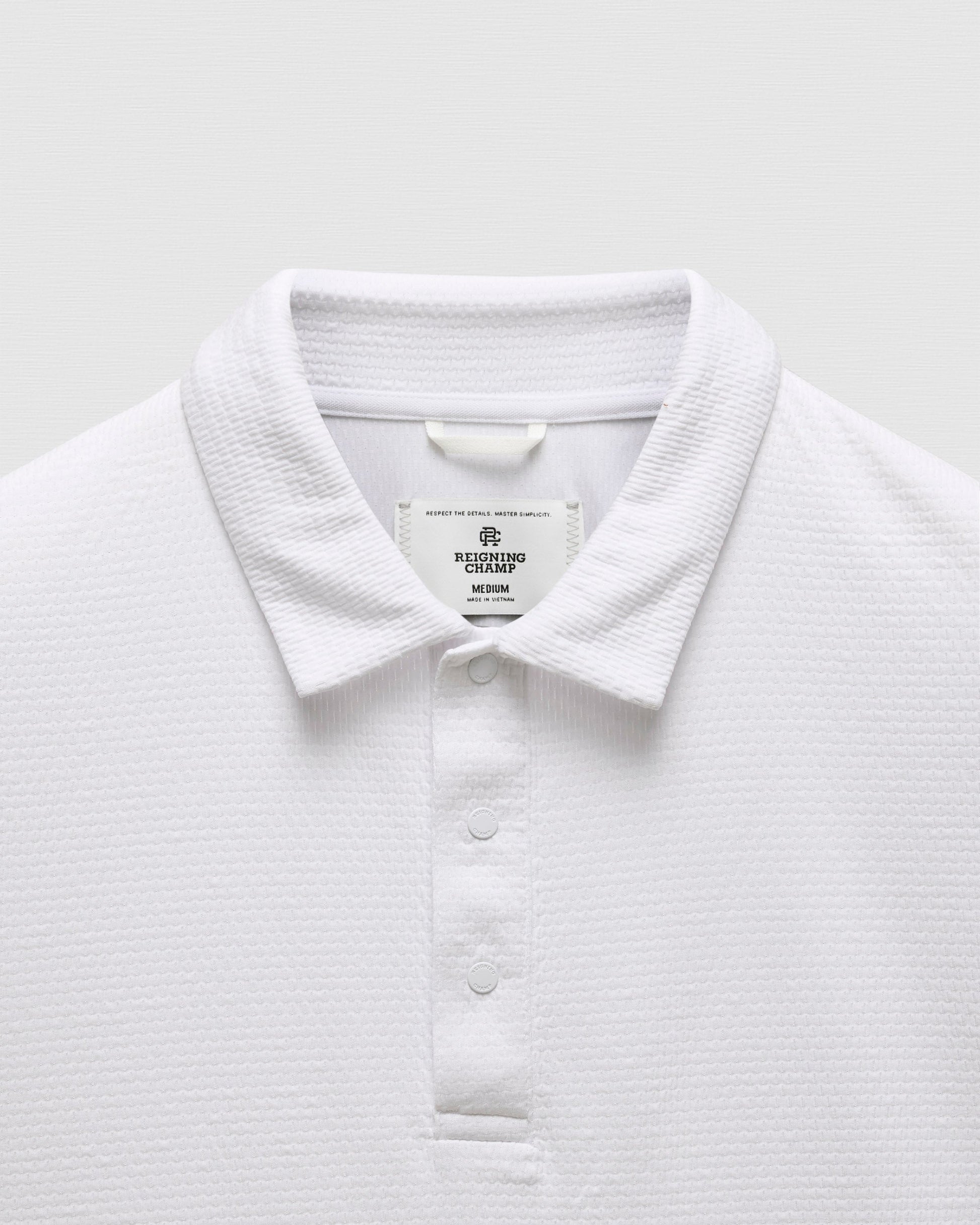 A moisture-wicking mesh polo designed to keep you cool in all conditions. Solotex® Mesh is a breathable performance fabric with dynamic stretch, high rebound, and a smooth knit reverse. Designed with a self-fabric collar, metal snaps, semi-raglan sleeves, and side panel construction for unrestricted movement.