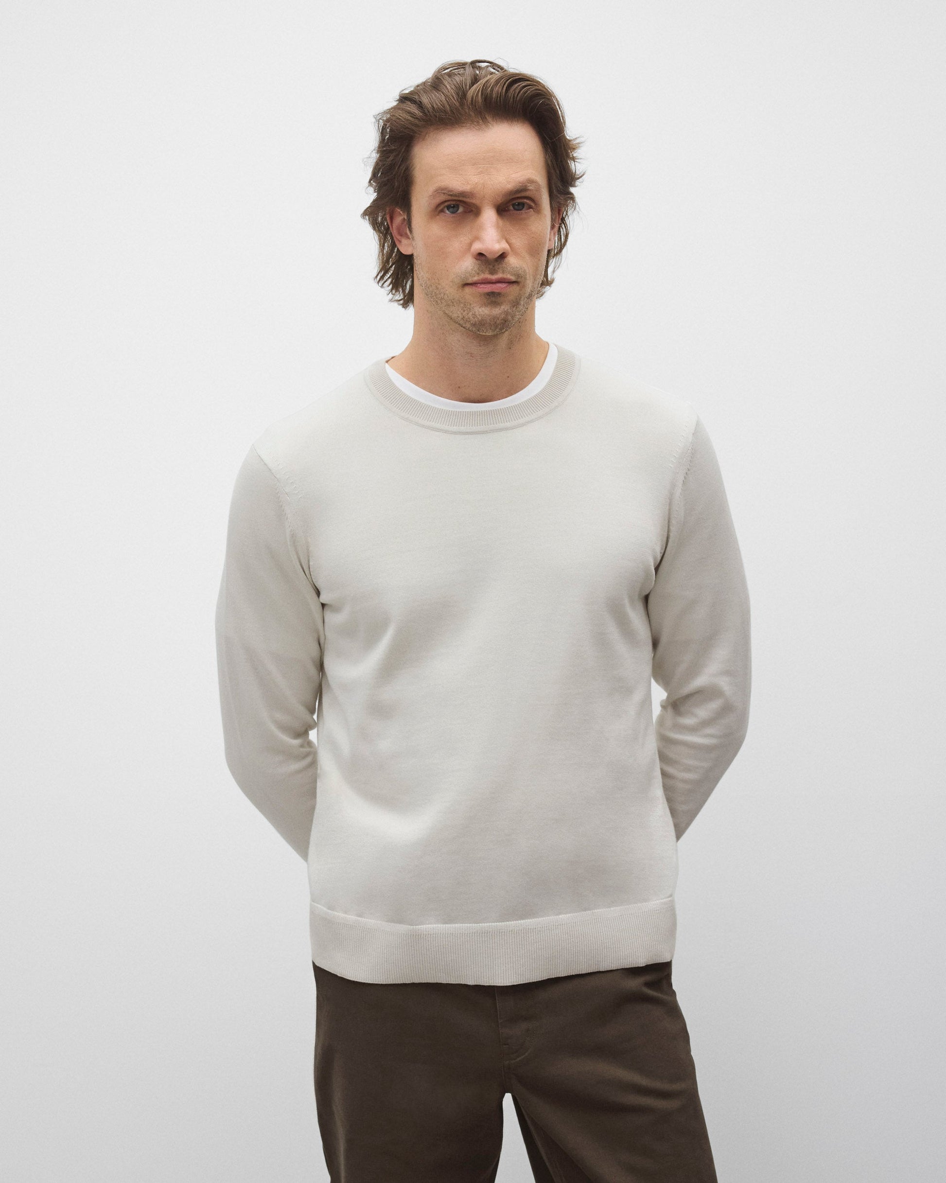 This knit crewneck is crafted from fine Supima cotton, known for its exceptional softness, strength, and breathability. Cut in a standard fit with balanced proportions and fully fashioned seams for a clean finish. Designed with a 1x1 rib collar, full-needle side gussets, and lycra-blend cuffs and waist hem for added durability.