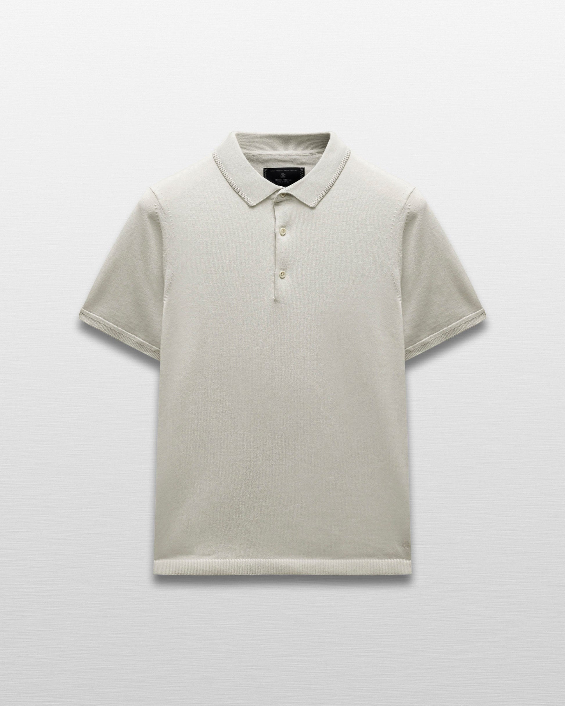 This knit polo is crafted from fine Supima cotton, prized for its exceptional softness, strength, and breathability. Featuring a standard fit, with fully fashioned seams. Designed with custom ribbing at the collar and sleeves, a 3-button placket, corozo buttons, and a lycra-blended hem for added durability.