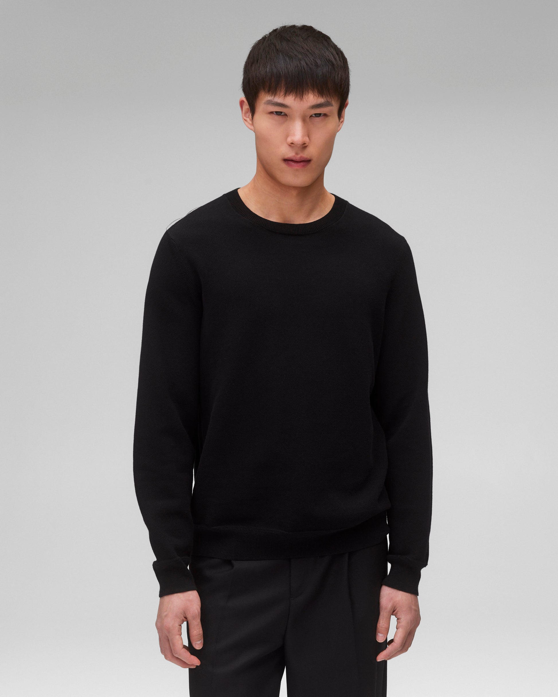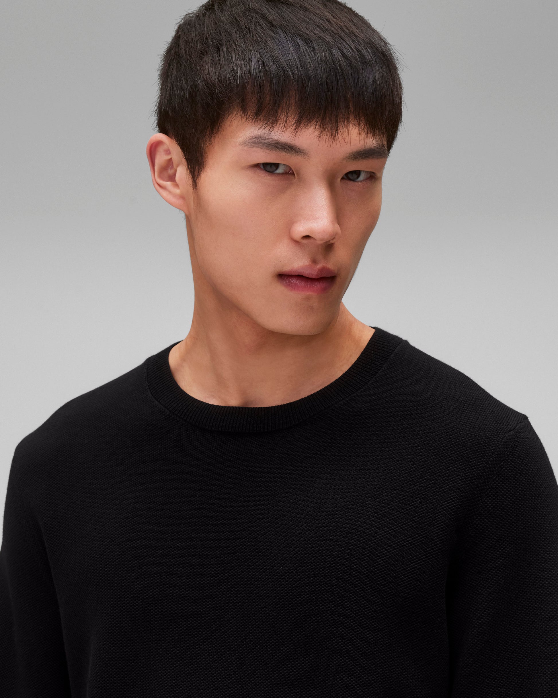 This pique knit crewneck sweater is crafted from fine-gauge Supima cotton, prized for its exceptional softness, strength, and breathability. Designed in a standard fit with fully fashioned seams, it features french shoulder seams, side gussets, and 1x1 rib collar, cuffs and hem.