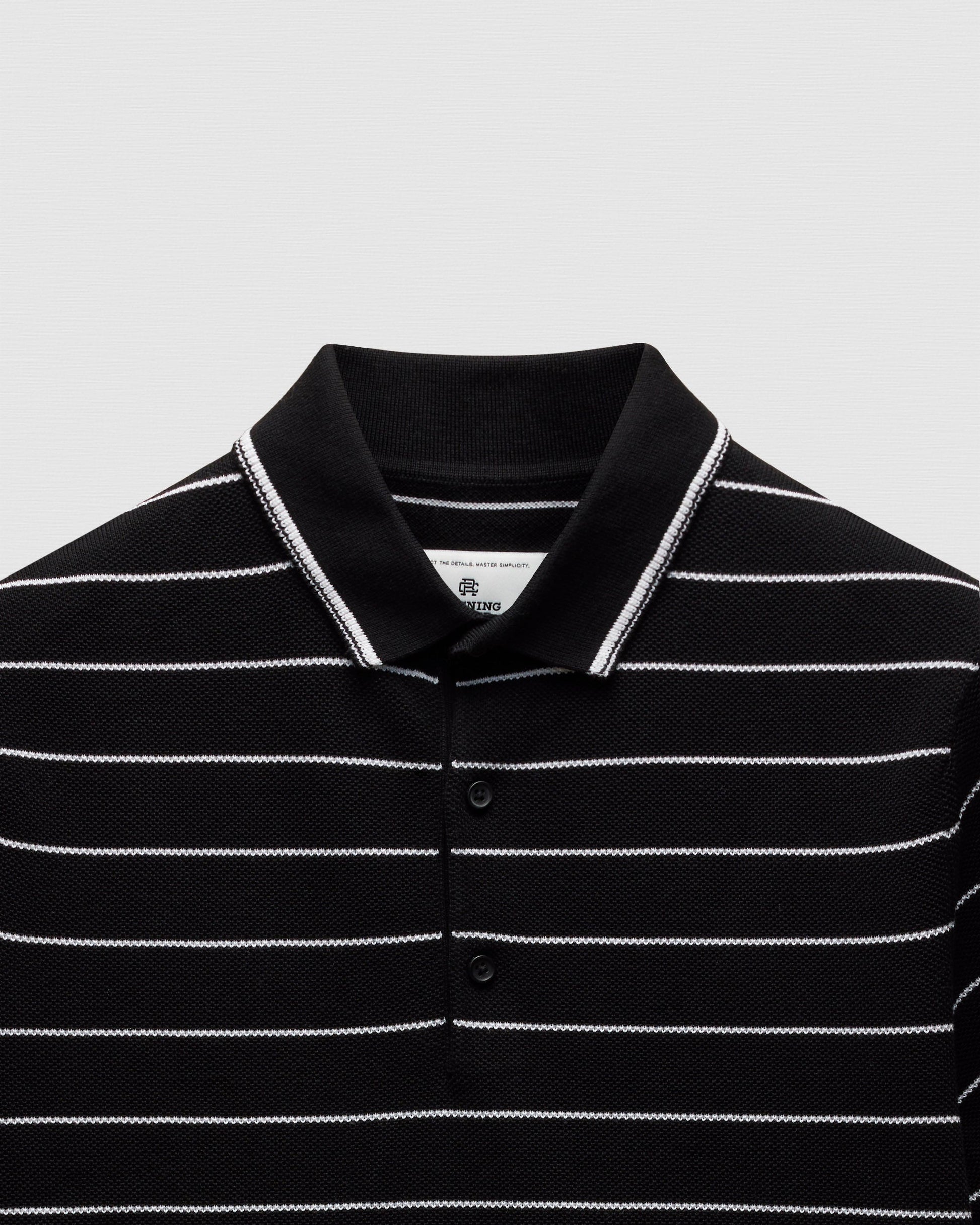 This pique knit polo is crafted from fine-gauge Supima cotton, prized for its exceptional softness, strength, and breathability. Designed in a standard fit with fully fashioned seams, it features a full needle stitch collar, a three-button placket, side gussets, and finished cuffs and hem.